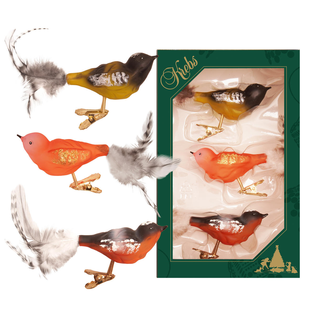 Ebenso traditionell wie Christbaumkugeln, Glas Figuren und Weihnachtsornamente, gehören Vögel zum faszinierenden Schein der von Glitzer schillernden Weihnachtswelt.
