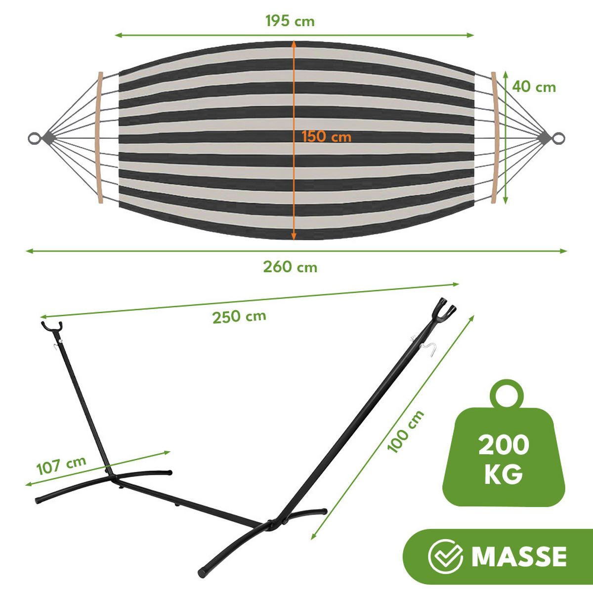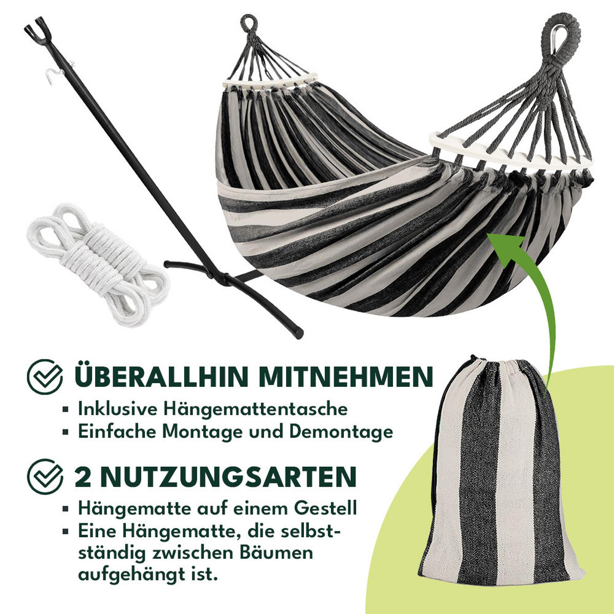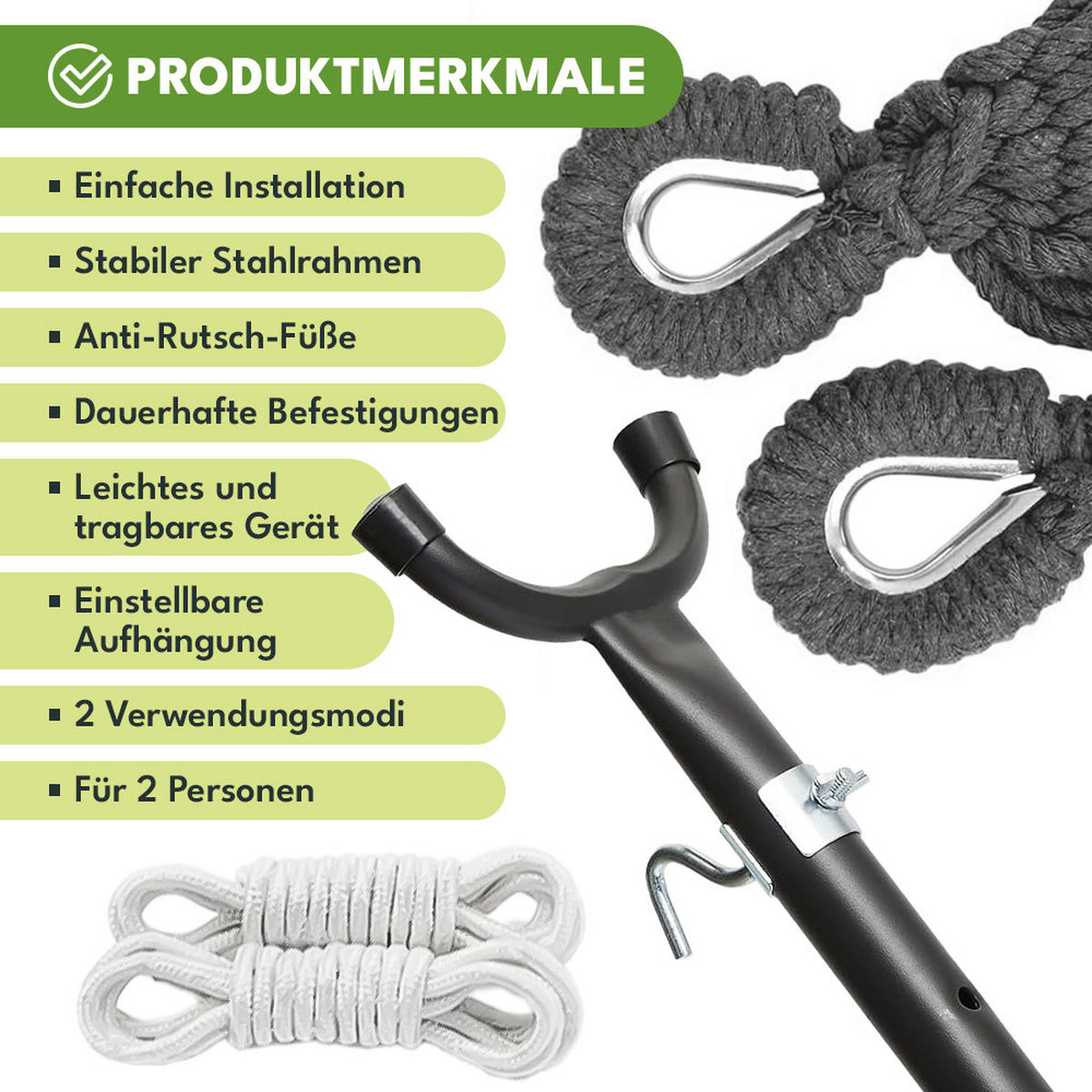 Komplettset mit Gestell – Enthält eine stabile Metallkonstruktion, eine hochwertige Hängematte, Seile und eine Aufbewahrungstasche