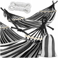 1x Hängematte mit Holzstangen (Farbe: Blau-Weiß oder Schwarz-Weiß)