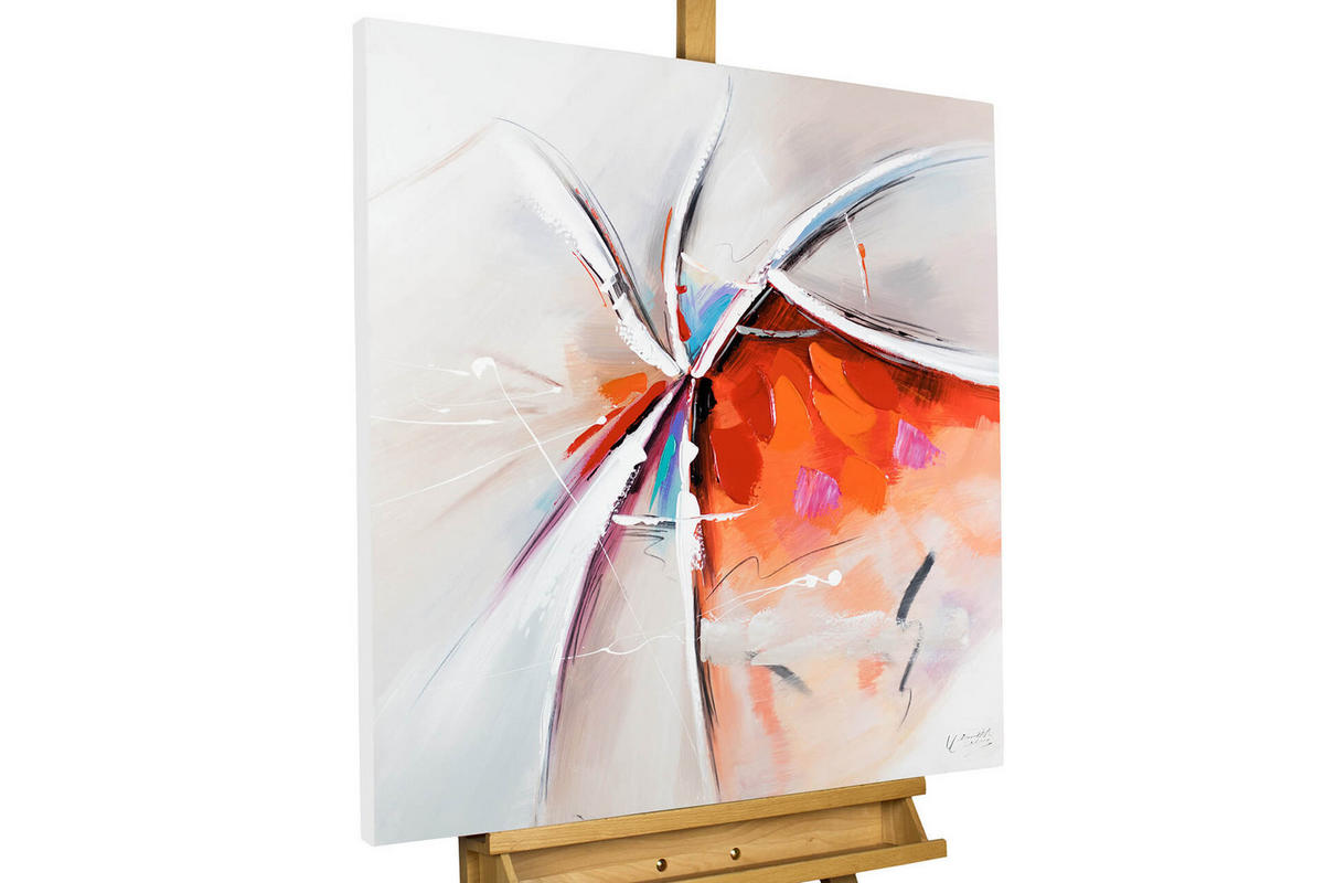 Eine fragile Oberfläche, die aufbricht und den Blick auf das freigibt, 'Was einmal war'. In diesem handgemalten Acrylbild durchbrechen warme Rottöne das rissige Weißgrau und erzählen dem Betrachter von einer Zeit voller Hoffnung und Glück. Schenken Sie Ihren Besuchern mit diesem Bild im Wohnzimmer ein wohliges Gefühl voller Zuversicht! Ihr handgemaltes Gemälde erhalten Sie in der Größe 80x80cm. Anders als bei minderwertigen Drucken auf Leinwand können Sie auf unseren Unikaten jeden Pinselstrich fühlen.