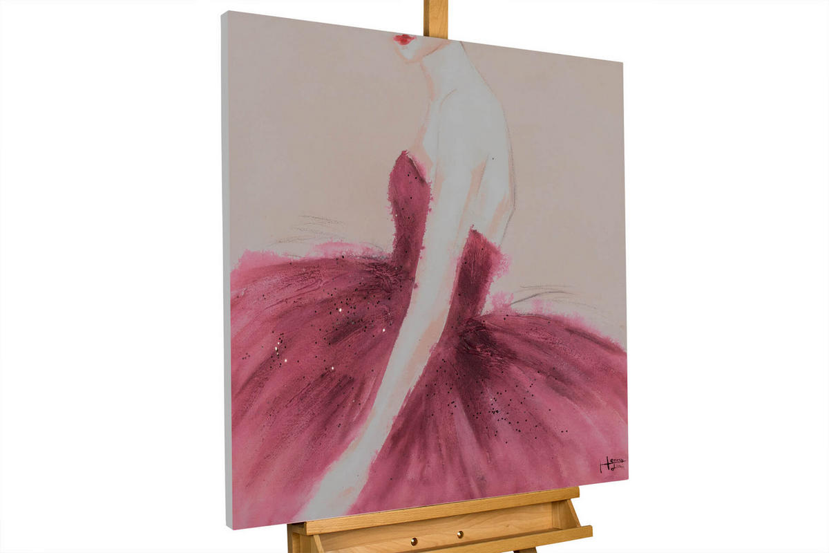 In Ihrem Raum wird das handgemalte Acrylgemälde 'Leidenschaftlicher Tanz' mit der Verzierung Glitter und der leuchtenden Brillanz seiner Farben alle Blicke auf sich ziehen. Als Betrachter spüren Sie, dass der Künstler jeden Pinselstrich in Rosa mit Liebe zum Detail gesetzt hat, wodurch sich jedes Bild in Nuancen von anderen unterscheidet. Das Leinwandbild ist Ausdruck Ihrer Persönlichkeit und wertet Ihren Raum auf, da durch den abwechslungsreichen Farbauftrag eine spannende Oberflächenstruktur entsteht. Ihr handgemaltes Gemälde erhalten Sie in der Größe 80x80cm. Anders als bei minderwertigen Drucken auf Leinwand können Sie auf unseren Unikaten jeden Pinselstrich fühlen.