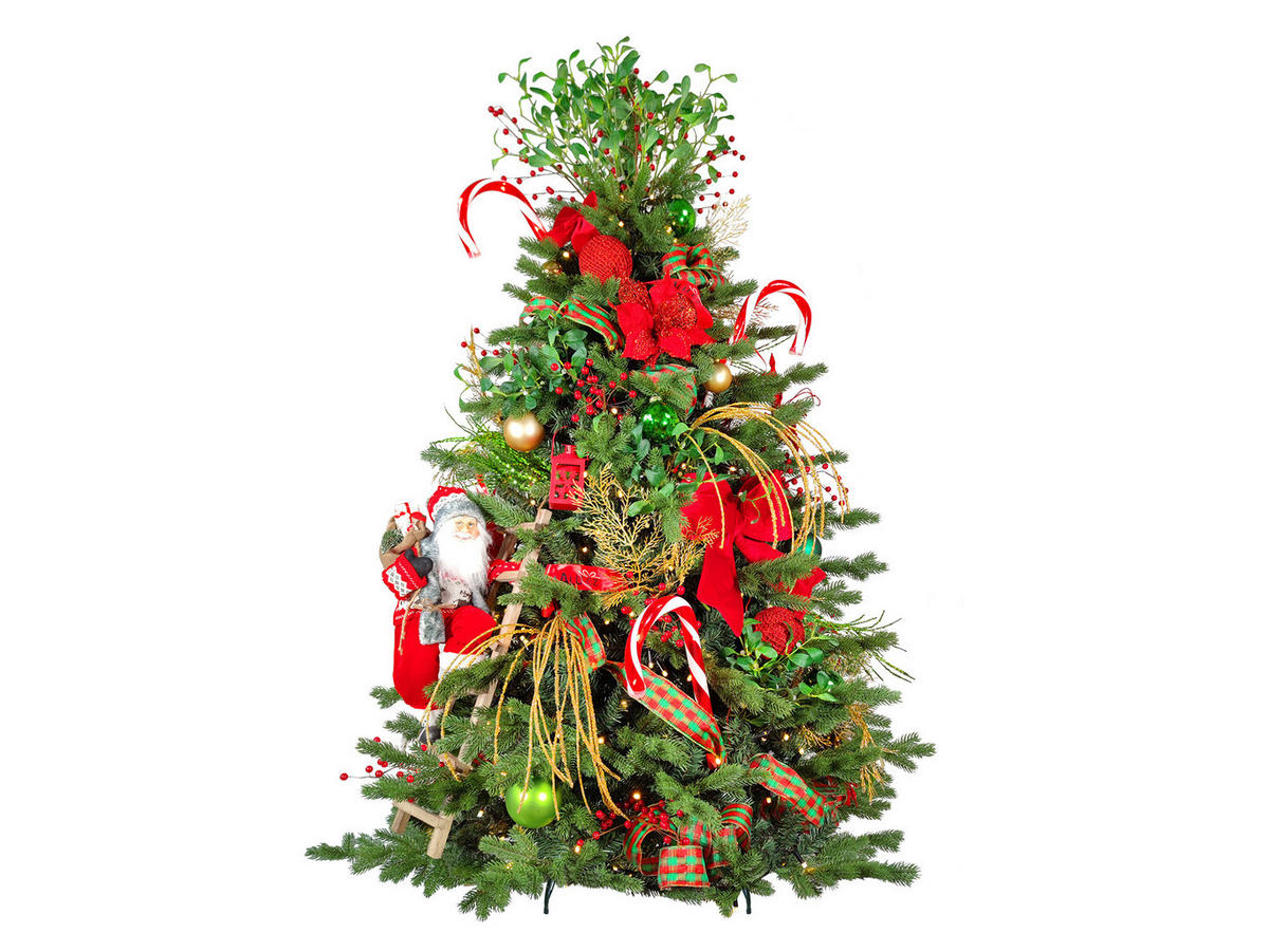 LAALU WEIHNACHTSBAUM geschmückt künstlich mit 87 Ornamenten SANTA CLAUS II 150 cm Baum mit Ständer und Weihnachtsornamenten