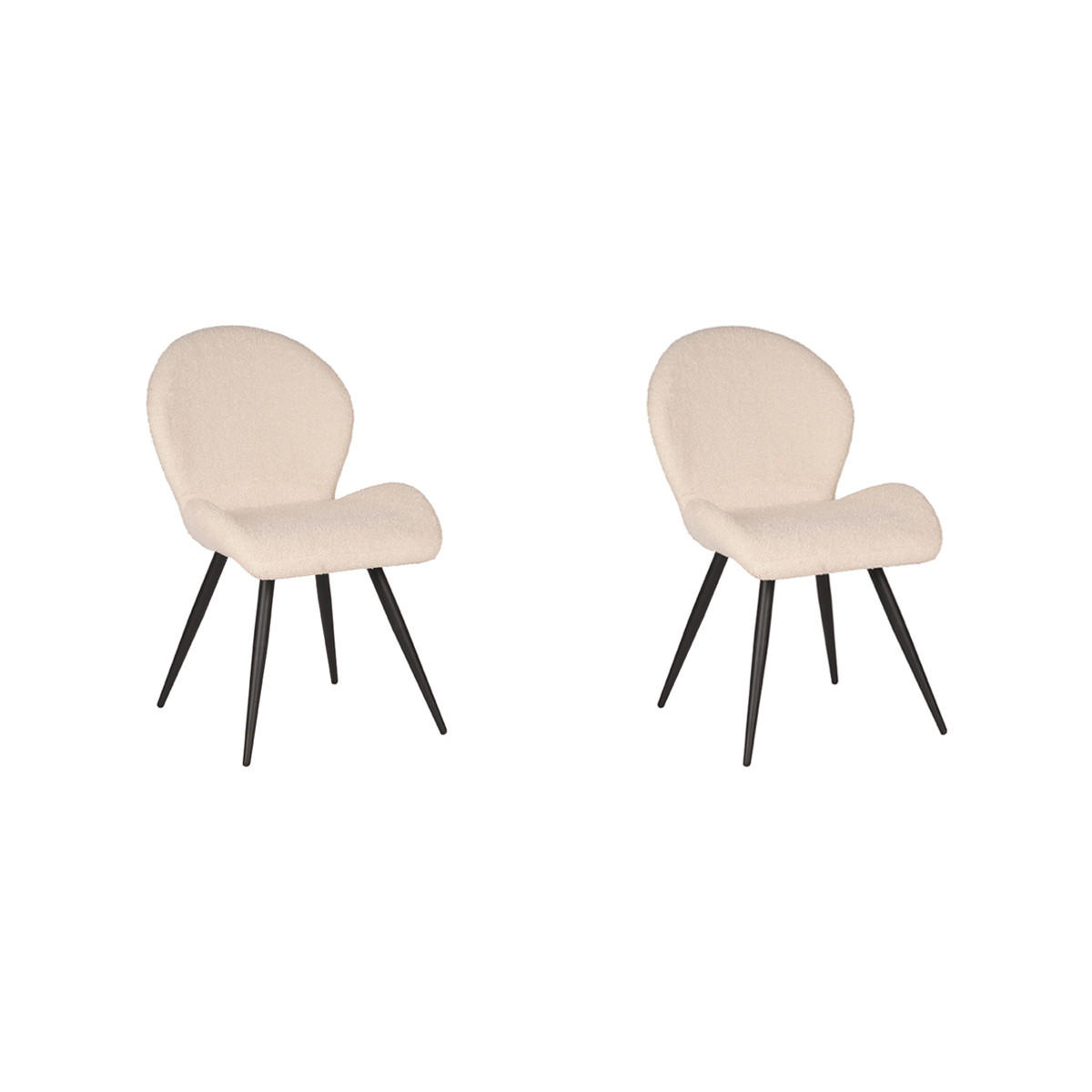 Der Esszimmerstuhl Sky ist aus elfenbeinfarbenem Teddy und hat ein Untergestell aus massivem, schwarzem Metall. Die ausgestellten Beine sorgen für zusätzliche Stabilität und einen verspielten Touch. Die luxuriöse Sitzfläche in Kombination mit dem hochwertigen Gestell macht Sky zu einem bequemen Stuhl mit schönem Sitz. Sky ist eine Bereicherung für den Esstisch.
