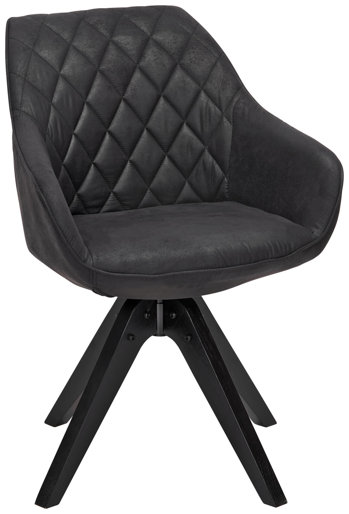 Die Schaumstoffpolsterung macht jede Mahlzeit mit der Familie oder Freunden zum Genuss. Der Mikrofaser-Bezug fühlt sich angenehm weich an. Ob Sie sich dem Teller oder Ihrem Sitznachbarn zuwenden, entscheiden Sie - die Drehfunktion macht´s möglich. Mit diesem Armlehnstuhl (drehbar) in Dunkelgrau und Schwarz bringen Sie Gemütlichkeit in Ihr Esszimmer!