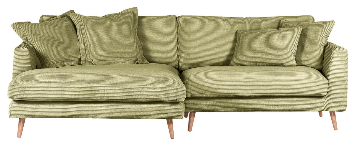 Ab auf Ihr hellgrünes Ecksofa mit Cord-Bezug und die ersehnte Me-Time genießen!
