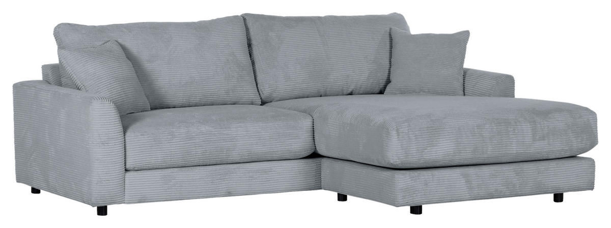 Uni-Dessin verhelfen dem Möbel zu einer schicken Gestaltung. Runde Füße in Schwarz verleihen dem Design den Feinschliff. Dieses graue Ecksofa mit Cord-Bezug zaubert Ihnen bei jeder Gelegenheit zum Ausspannen ein Lächeln ins Gesicht!