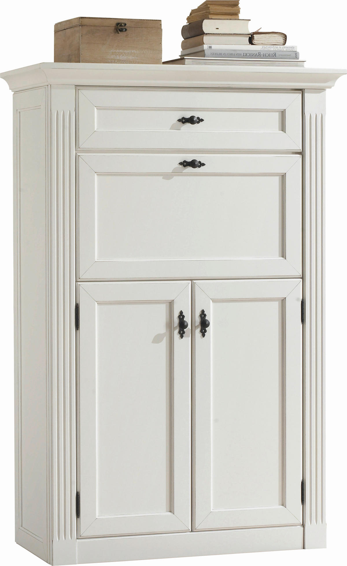 Dieser Sekretär besticht durch seine klassische Linienführung in Weiß sowie großzügig Stauraum! Die Front zaubert durch die traditionelle Ästhetik des lackierten Echtholz-Furniers nostalgischen Charme in Ihr Zuhause. Elegante Knopfgriffe aus Metall runden das Design gelungen ab. Für großzügig Stauraum sorgen 2 Drehtüren, eine Schublade sowie das aufklappbare Schreibpult. Mit einer Höhe von ca. 137 cm hat der chice Sekretär die perfekte Höhe, wenn Sie beispielsweise ein Kuvert beschriften oder ein Dokument unterzeichnen. Ein Möbelstück mit Charakter!