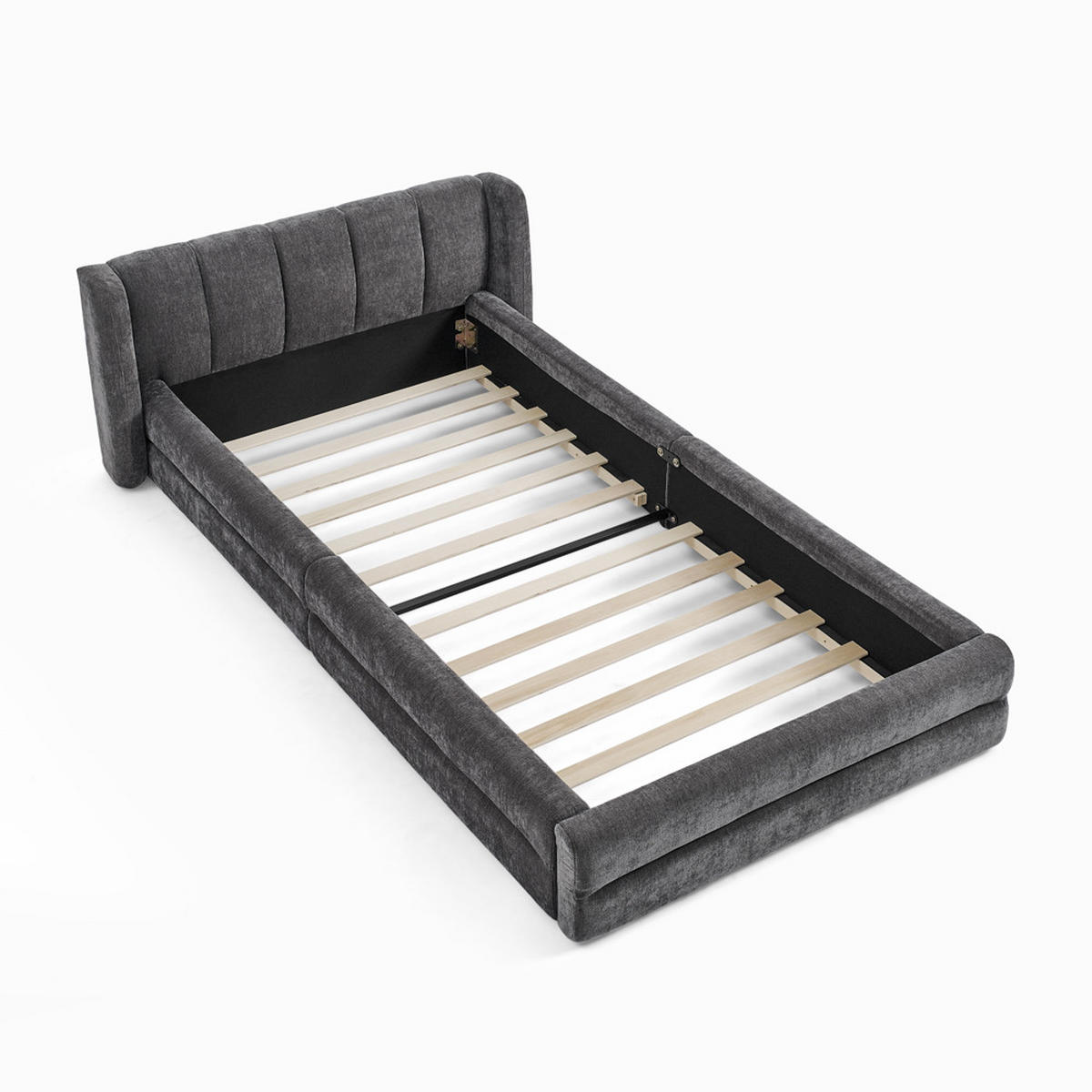 LEBENLANG EINZELBETT 90x200 cm Chenille Rückenlehne grau