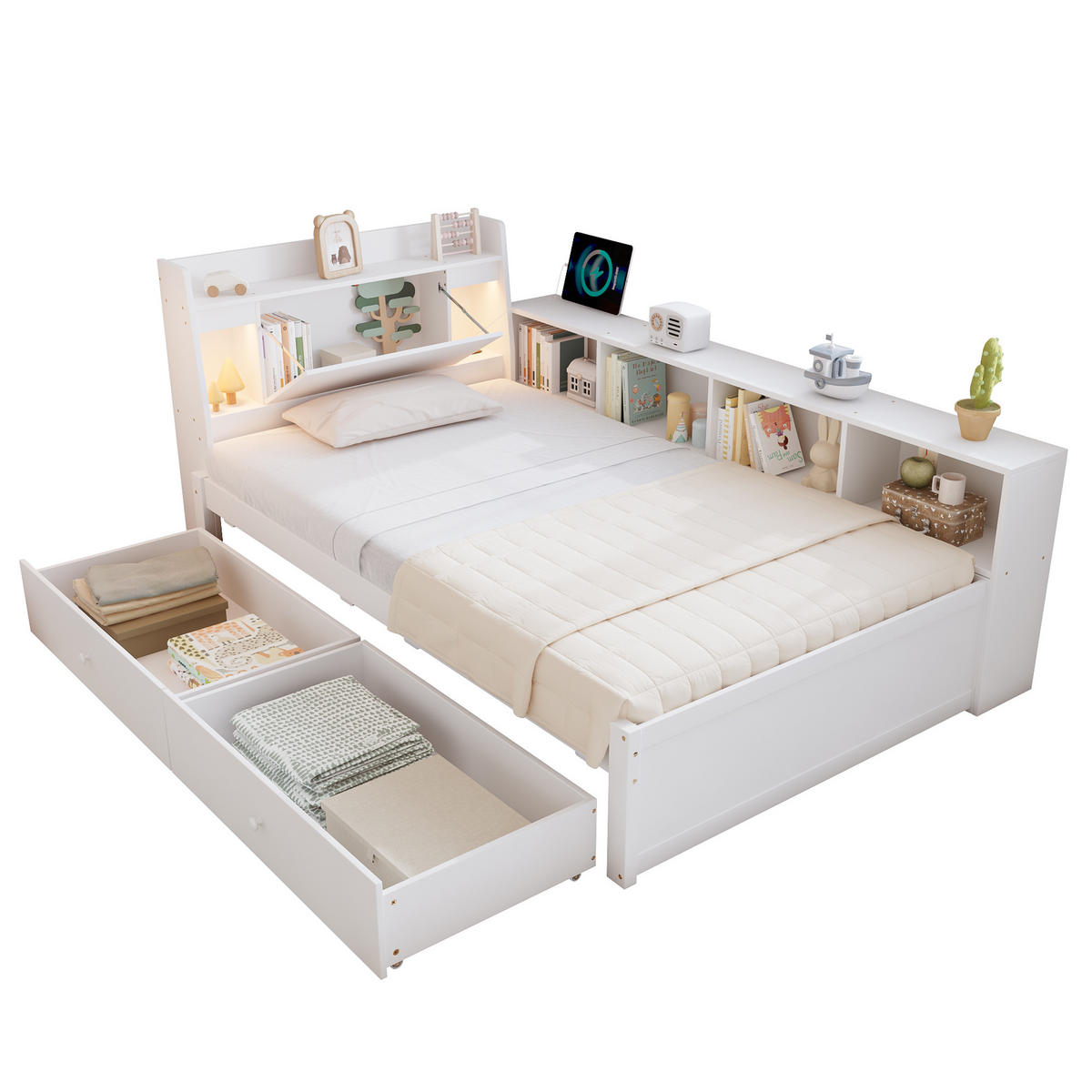 LEBENLANG EINZELBETT 90x200 cm LED USB Schubladen