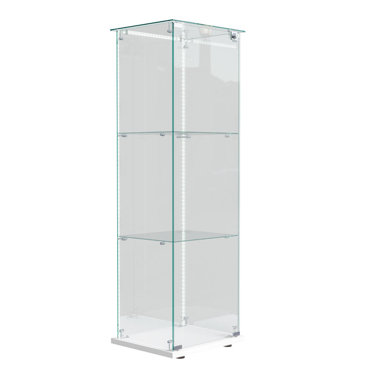 LEBENLANG GLASVITRINE 125x42x36 cm 1 Tür 3 Einlegeböden LED Touch weiß