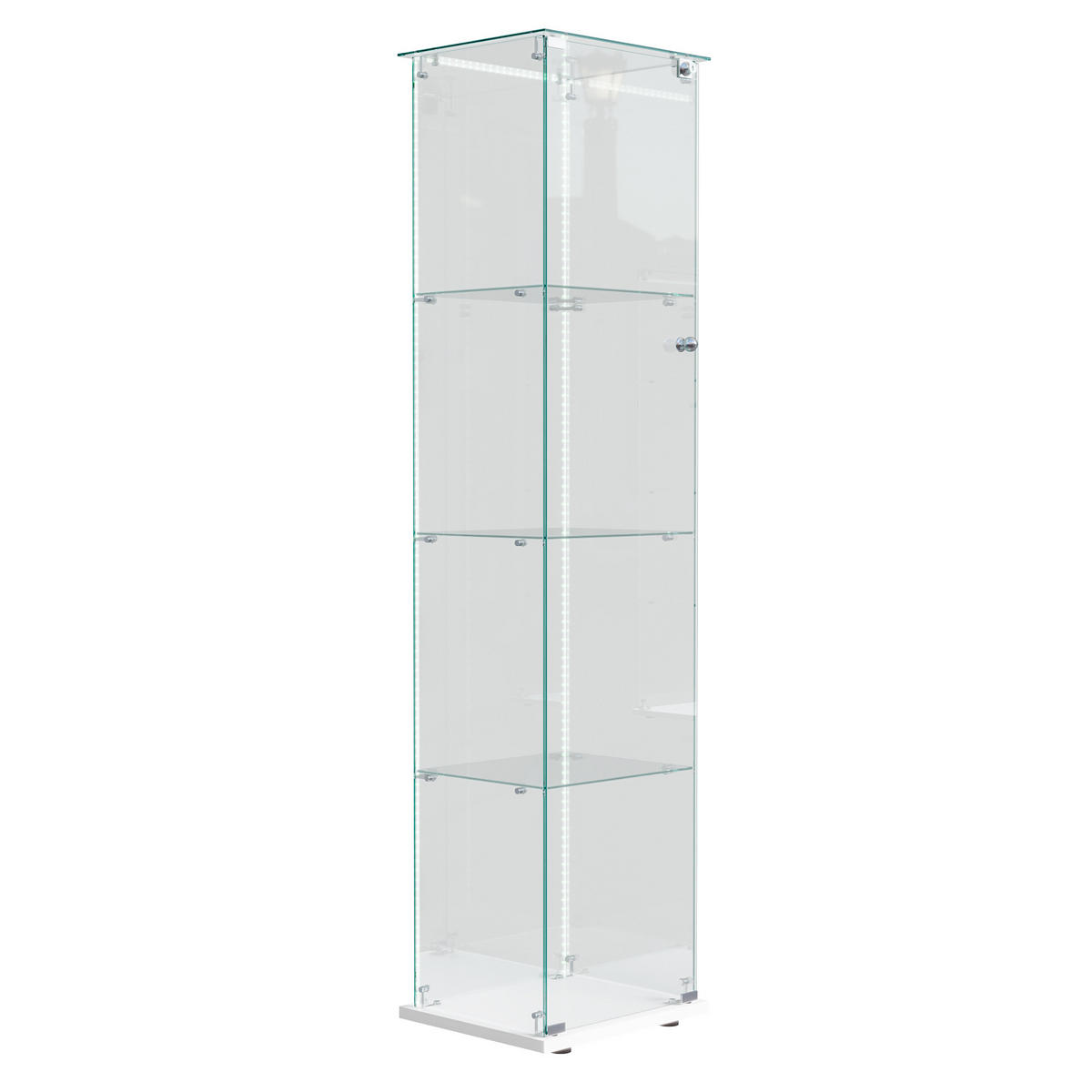 LEBENLANG GLASVITRINE 163x40x35 cm Türen Schloss Regalböden LED Bar weiß