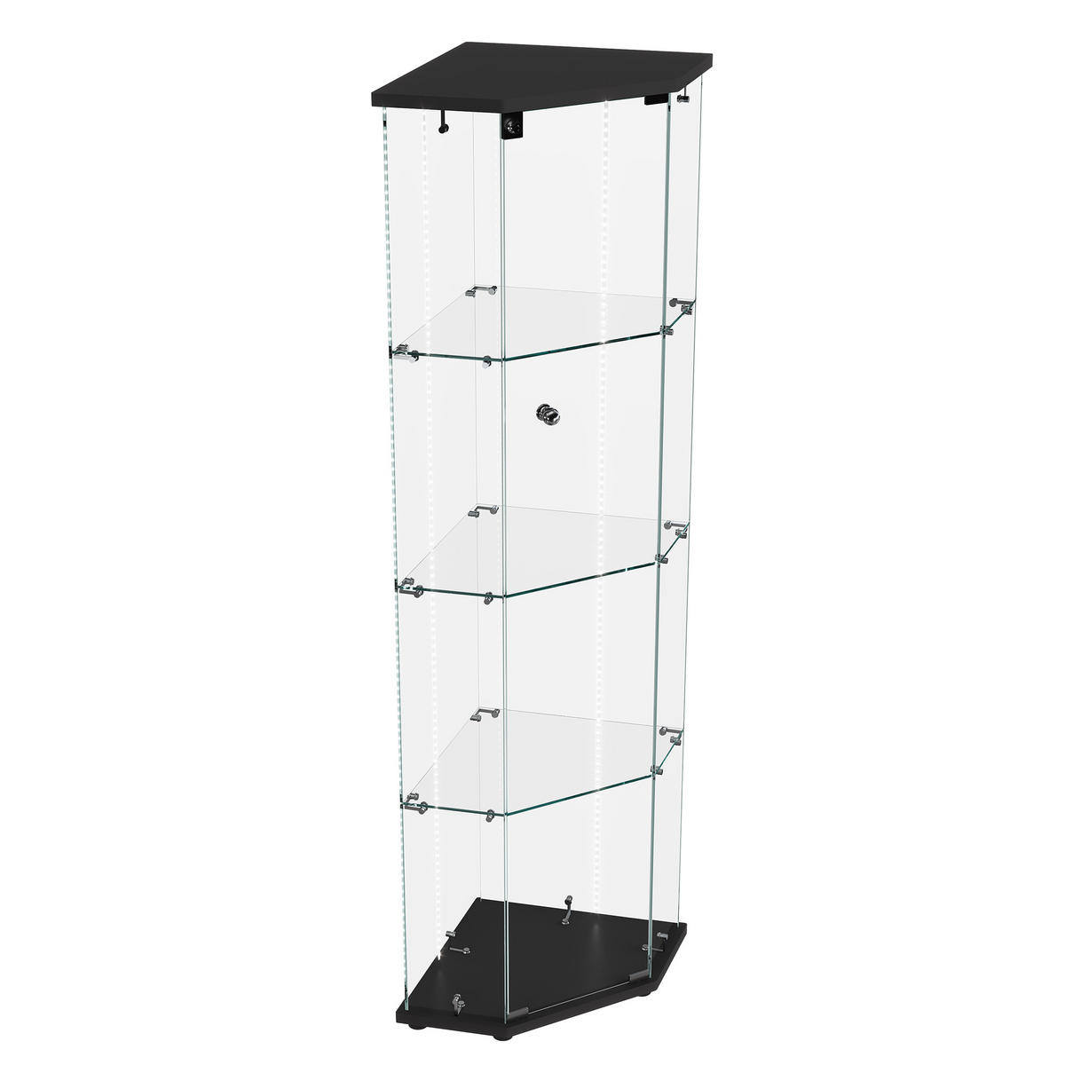 LEBENLANG GLASVITRINE freistehend LED 1 Tür Schloss Glas schwarz