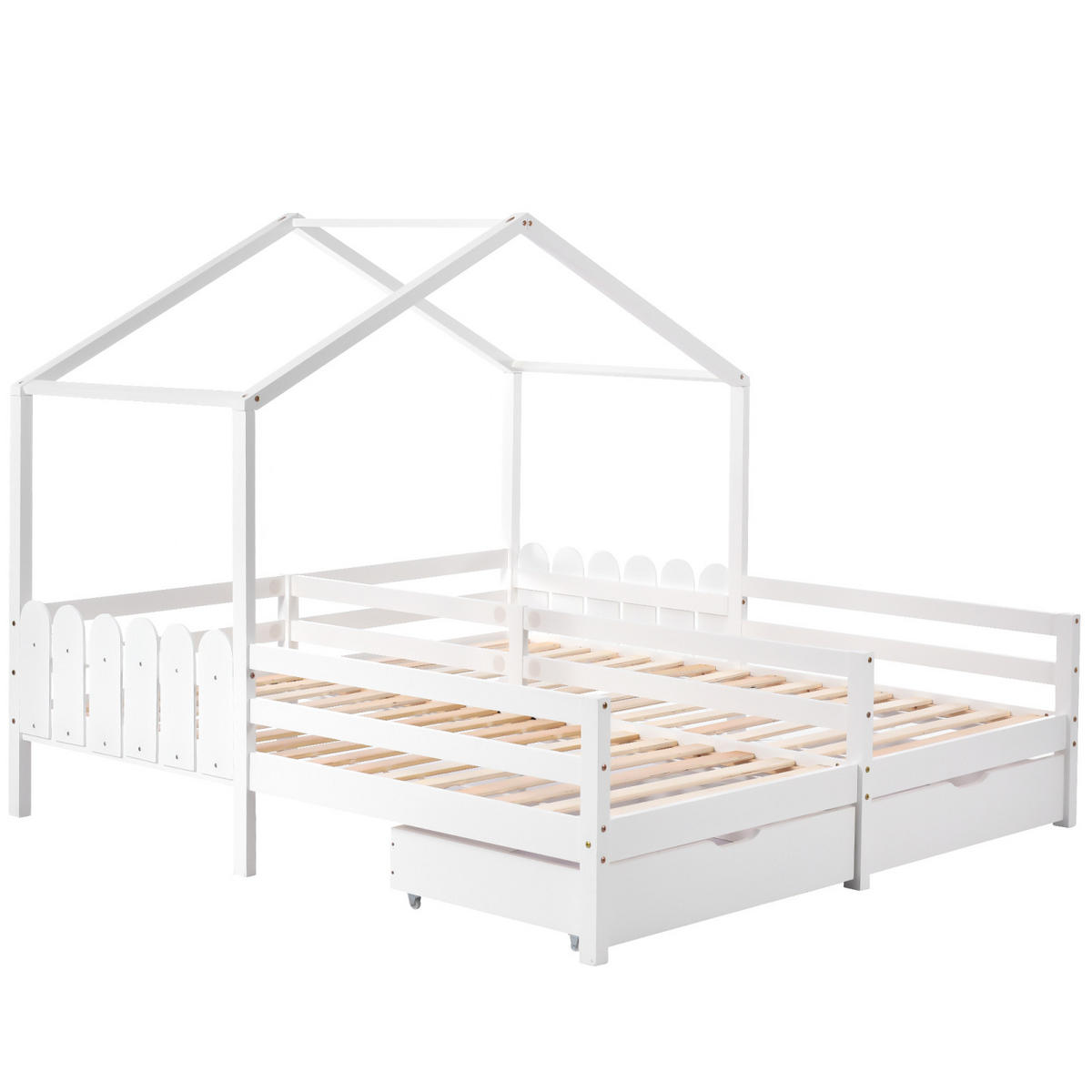 LEBENLANG HAUSBETT 90x200 cm Schubladen weiß