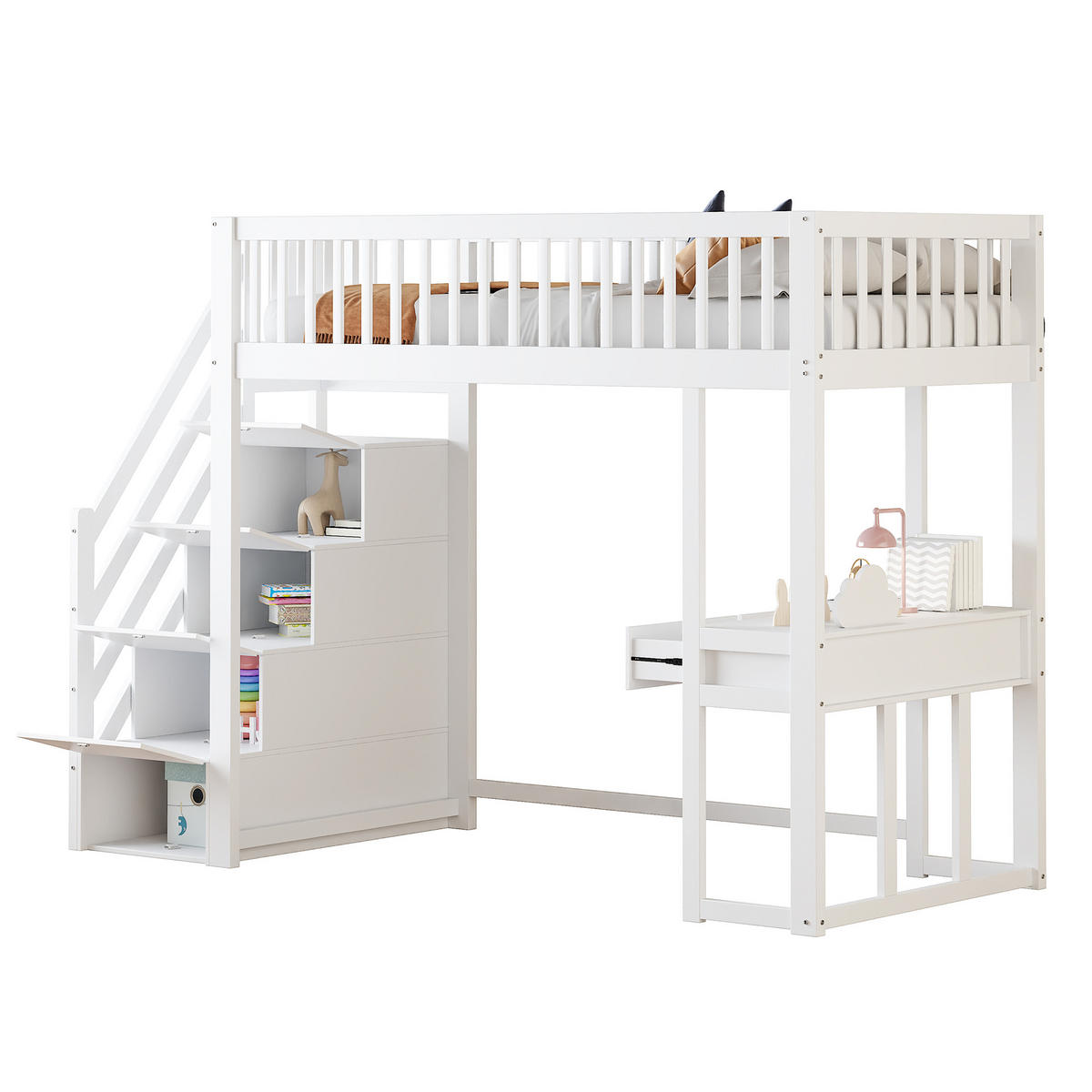 BETT MIT SICHERER LAGERTREPPE: Die eingebaute Treppe bietet sicheren Zugang zum Bett und reichlich Stauraum für Bücher, Spielzeug und mehr.