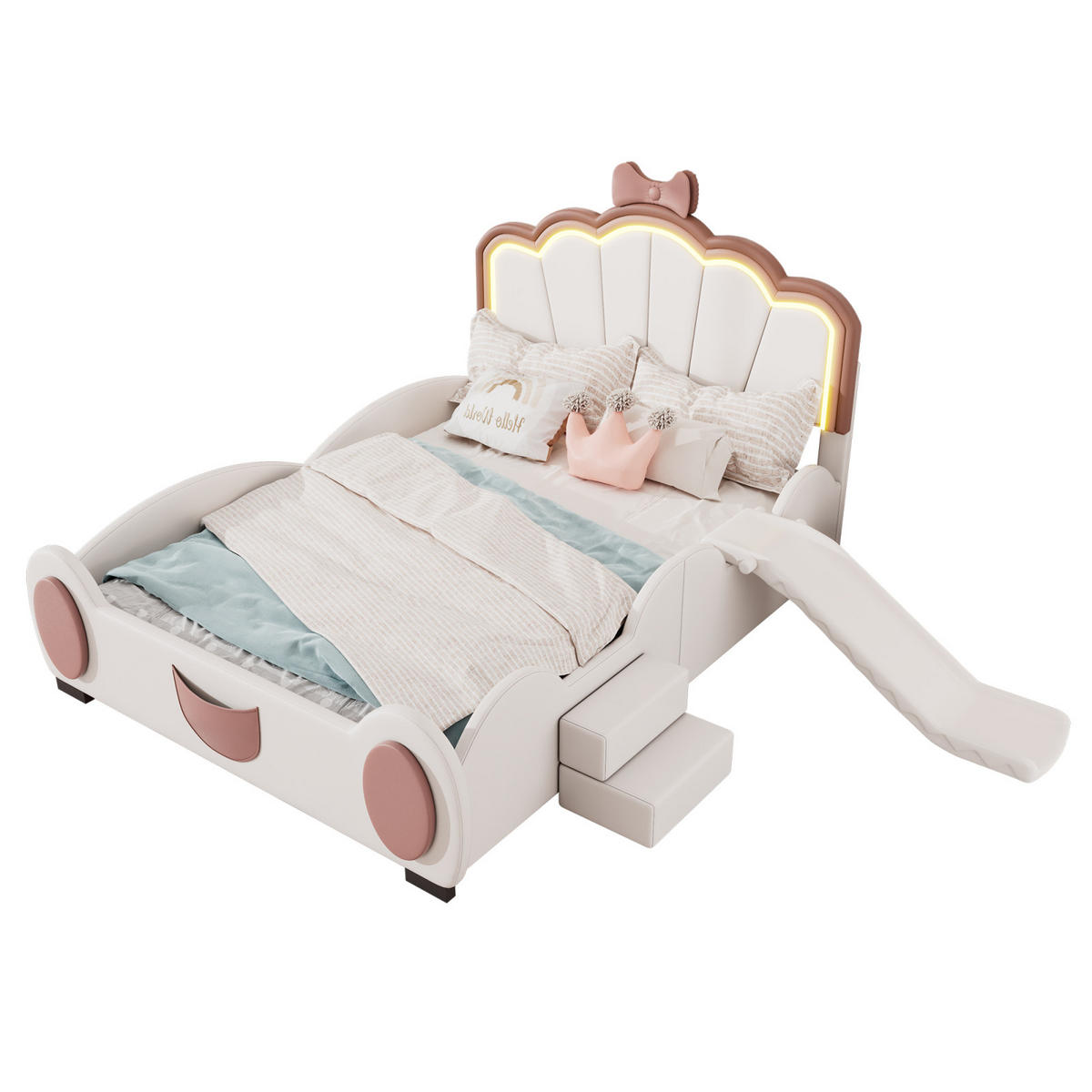 Hochwertige Materialien: Dieses Bett ist aus hochwertigem PU und MDF Kombination Material, PU-Material ist weich und bequem, leicht zu reinigen, während MDF hat eine ausgezeichnete Stabilität und Tragfähigkeit, die perfekte Kombination der beiden, um eine komfortable und sichere Schlafumgebung für die Kinder zu schaffen.