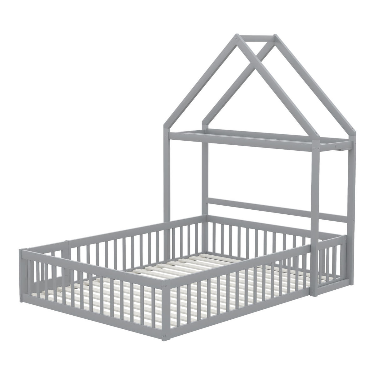 Mit Lattenrost - Dieses bodenstehende Kinderbett hat eine kindgerechte Höhe und ist mit einem Lattenrost ausgestattet. Der 15-Latten-Rahmen bietet starken Halt und kann eine Belastung von bis zu 200 kg tragen.