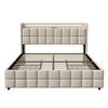 Das gepolsterte Kopfteil ist mit einer praktischen Ladefunktion ausgestattet. Zwei USB Anschlüsse und zwei EU Steckdosen ermöglichen das einfache Aufladen von Smartphones, Tablets oder anderen elektronischen Geräten direkt am Bett.