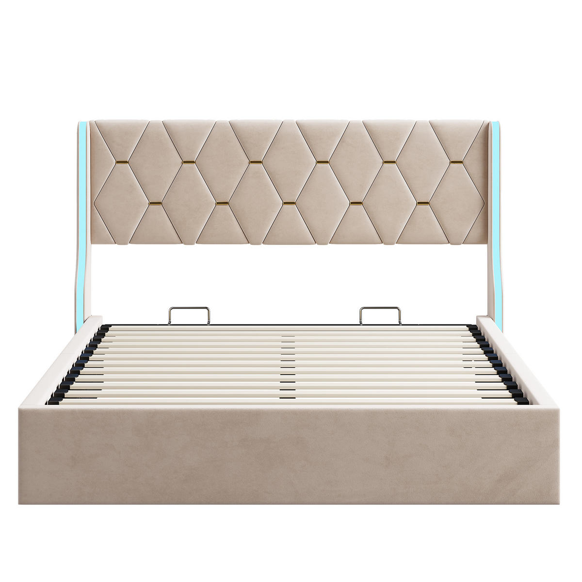 LEBENLANG POLSTERBETT 140x200 cm LED Kopfteil Lattenrost Samt beige