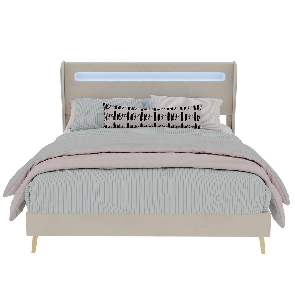 Design im modernen StilUnser Flachbett mit LED ist wunderschön gestaltet und bietet eine moderne Ästhetik. Das schlichte Farbschema der umlaufenden Kanten am gesamten Korpus passt sich dem Ton Ihres Wohnambientes an. Die gleiche Farbe der Rückenlehne nimmt die Farbe der anderen auf und ergänzt sie.