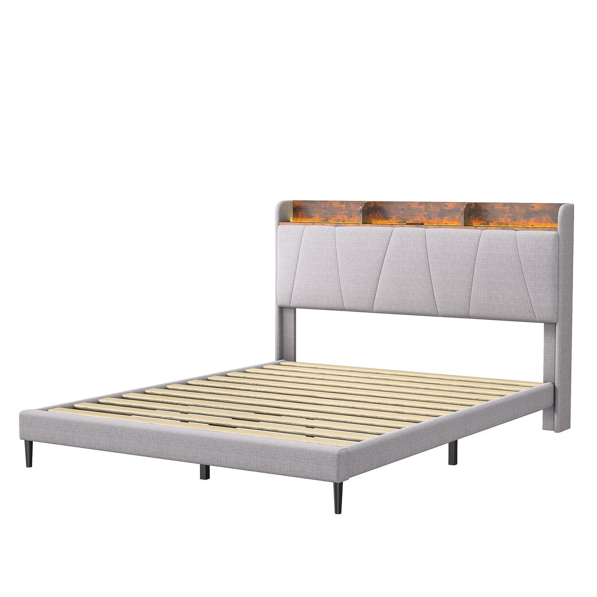LEBENLANG POLSTERBETT 140x200 cm LED Steckdose Lattenrost Leinen grau