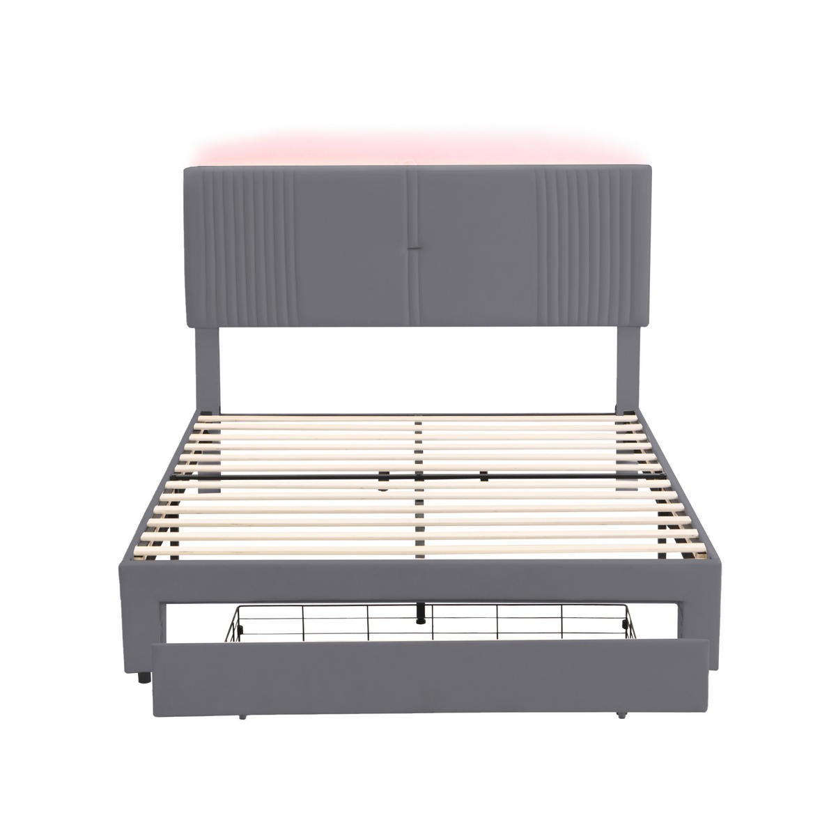 Bett mit Schubladen – Dieses Stoffbettgestell verfügt über 1 große ausziehbare Schublade (4 Rollen unter der Schublade), perfekt für die Aufbewahrung zu Hause. Versteckter Stauraum mit großer Kapazität, schön und praktisch.