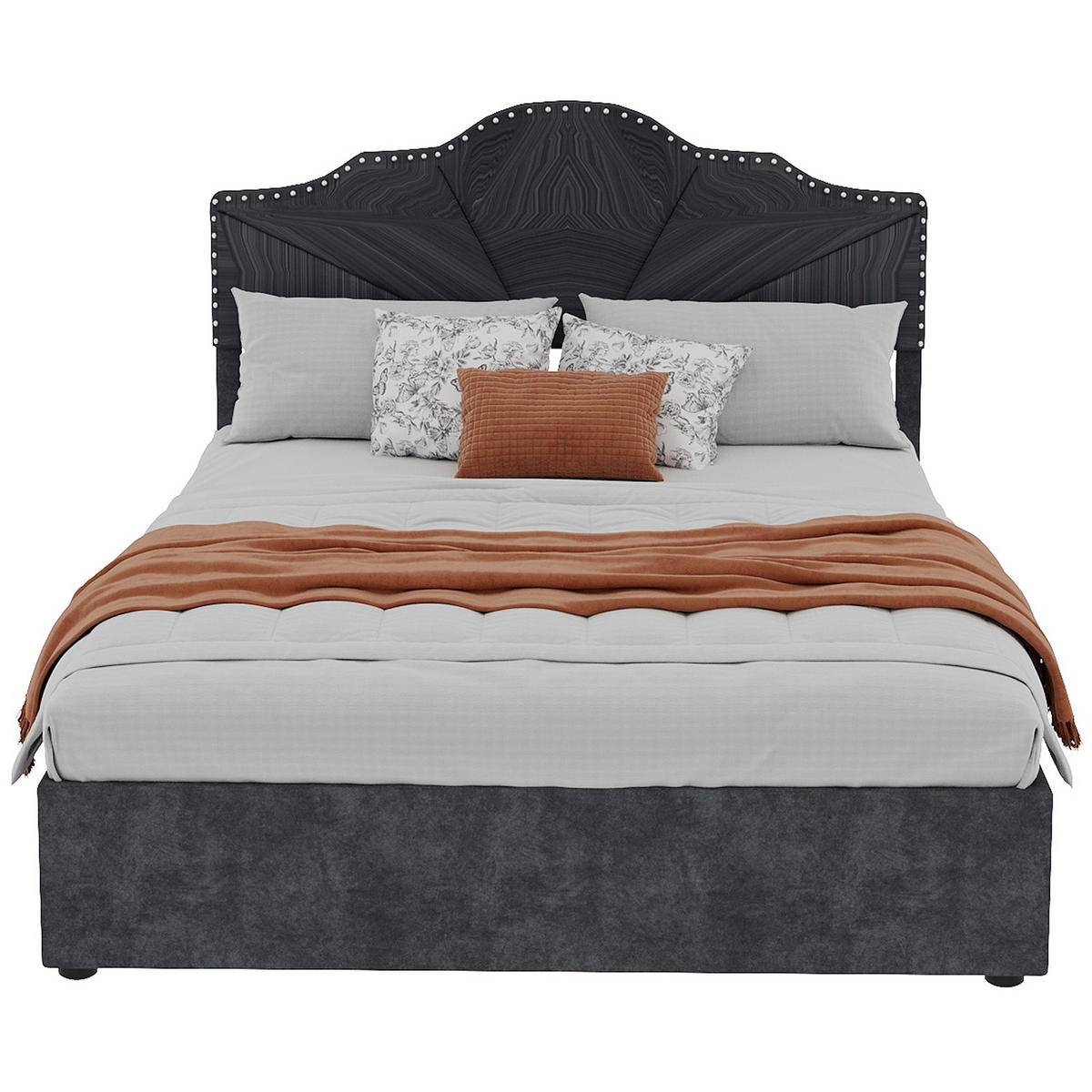1.tylisches Aussehen: Der Kopfteil des Bettes verfügt über trendy geometrische Design - Elemente und exquisiten Nägelbeschlag. Mit scharfen Linien und einer originellen Form unterstreicht es einen einzigartigen Geschmack und hebt mühelos das Ambiente des Schlafzimmers an.