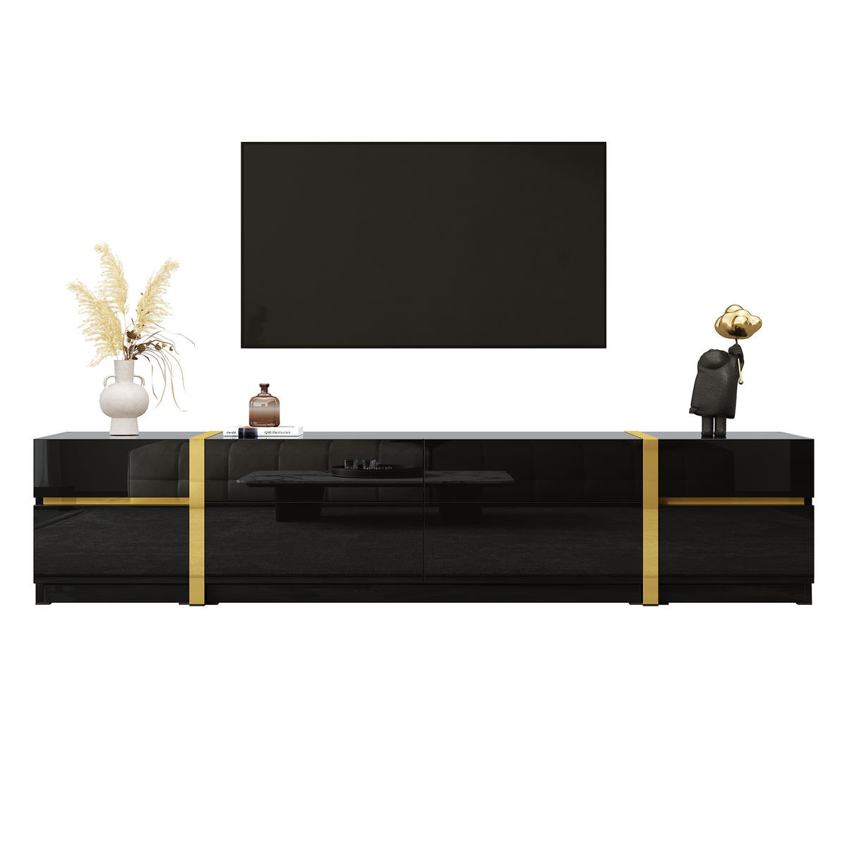 LEBENLANG TV-SCHRANK Lowboard Hochglanz Goldkante Türen Schubladen