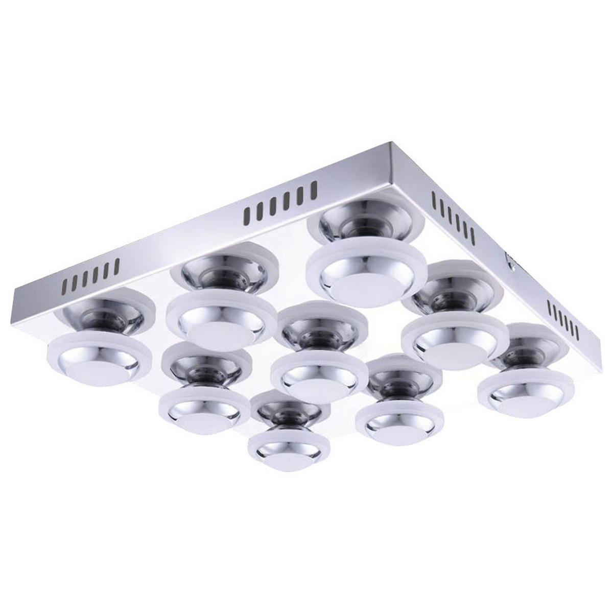 Diese stilvolle LED Deckenleuchte von Modell Carter überzeugt durch ihr eckiges Design und eine elegante Silber-Chrom Optik, die jedem Wohnraum eine zeitgemäße Note verleiht. Die fest verbauten LED-Leuchtmittel sorgen für eine angenehme und gleichmäßige Ausleuchtung mit neun Lichtquellen, die für eine helle Atmosphäre sorgen. Mit einer Größe von 38 x 38 cm bei nur 9 cm Höhe ist diese Leuchte dezent und dennoch präsent an der Zimmerdecke montierbar. Die moderne Raumbeleuchtung passt ideal in Wohnräume, die ein cleanes und hochwertiges Ambiente wünschen. Die elektrische Deckenlampe kombiniert Form und Funktion und setzt mit ihrem edlen Chrom-Finish gekonnt Akzente unter Ihren Lampen und Leuchten.