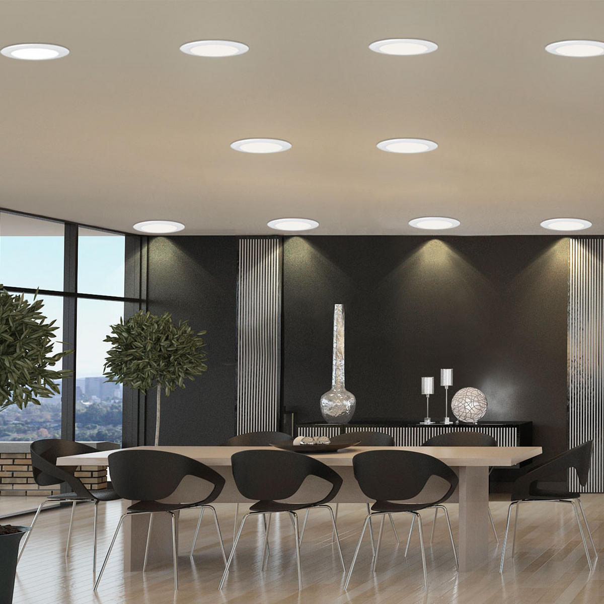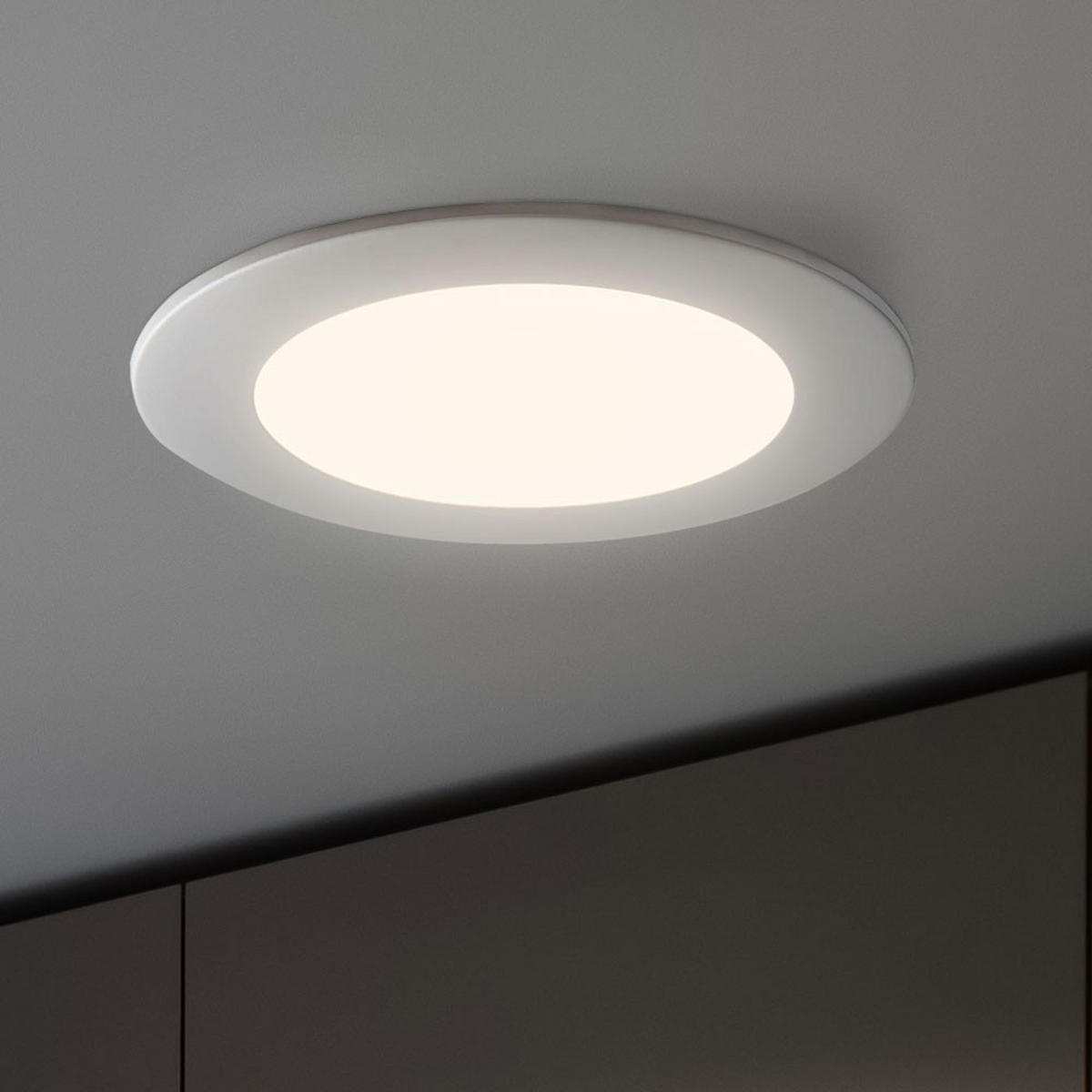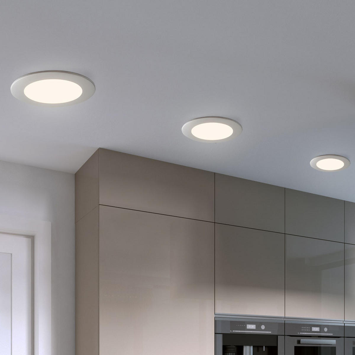 Diese elegante LED Deckenleuchte überzeugt durch ihr kompaktes Design mit einem Durchmesser von 22,5 cm und einer flachen Bauhöhe von 1,2 cm. Die Leuchte ist speziell als Einbauleuchte konzipiert und fügt sich daher nahtlos in Decken ein. Das weiße Gehäuse ergänzt verschiedene Einrichtungsstile harmonisch. Mit einer Leistung von 18 Watt erzeugt das fest verbaute LED-Leuchtmittel ein angenehmes neutralweißes Licht mit 1400 Lumen, das für eine gleichmäßige Raumbeleuchtung sorgt. Diese LED Leuchte kommt ohne Schalter und ist für den Innenbereich mit Schutzart IP20 geeignet. Als effiziente Deckenleuchte bietet sie eine funktionale und ästhetische Lichtlösung für Ihr Zuhause oder Büro.