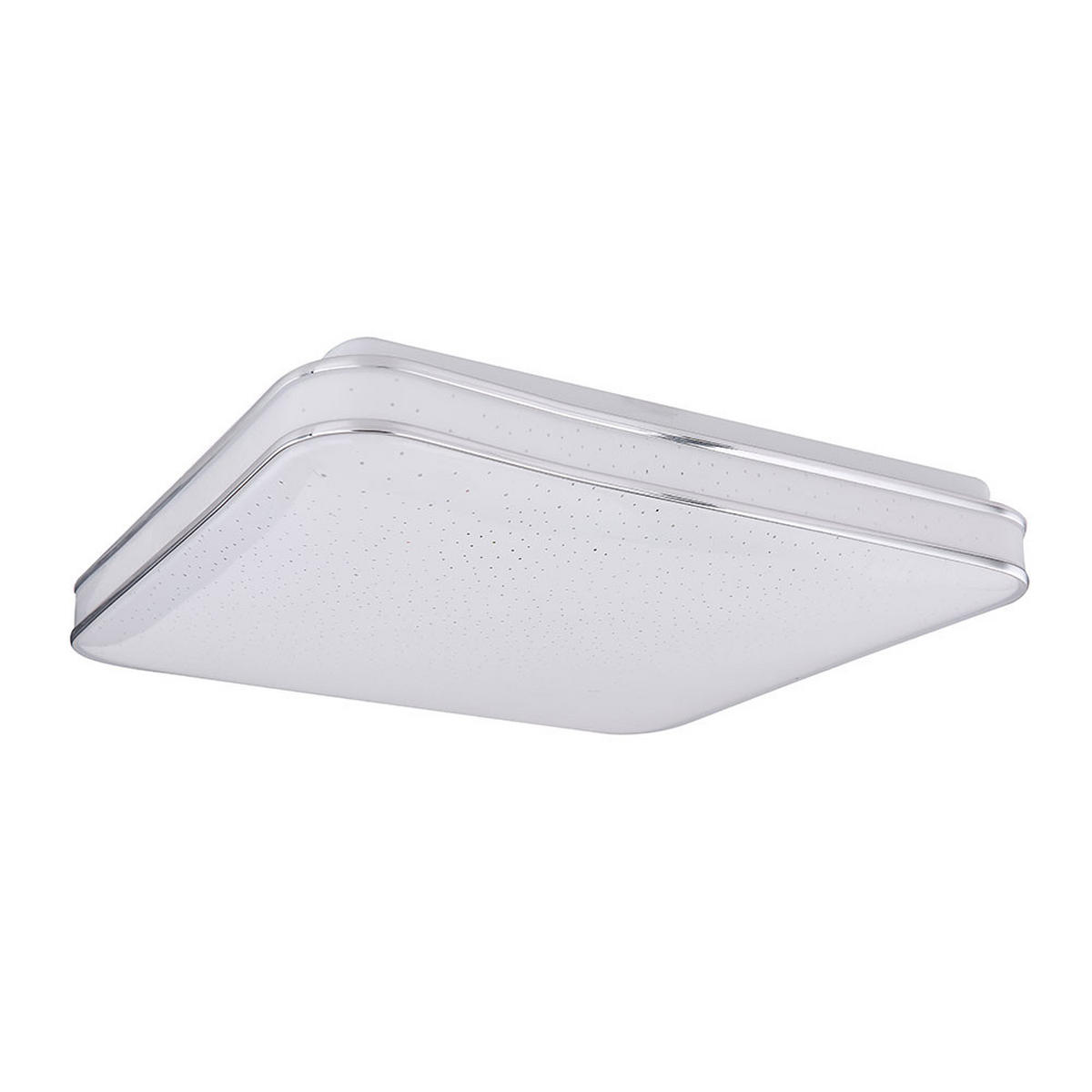 Diese moderne LED Deckenleuchte begeistert durch ihr Metallgestell in Weiß kombiniert mit einem Acryl-Lampenschirm in opal. Das Highlight der Leuchte ist der dekorative Sparkle-Effekt mit Chromring, der für ein faszinierendes Sternenlicht sorgt und jedem Raum eine besondere Atmosphäre verleiht. Mit einer Größe von 33,5 cm Länge und Breite sowie einer Höhe von 7,3 cm eignet sich diese LED Deckenlampe ideal für Wohn- oder Schlafbereiche, die ein stilvolles und zugleich funktionales Licht benötigen. Das fest verbaute LED-Leuchtmittel sorgt für eine gleichmäßige und angenehme Ausleuchtung, während das schalterlose Design eine unkomplizierte Bedienung ermöglicht.