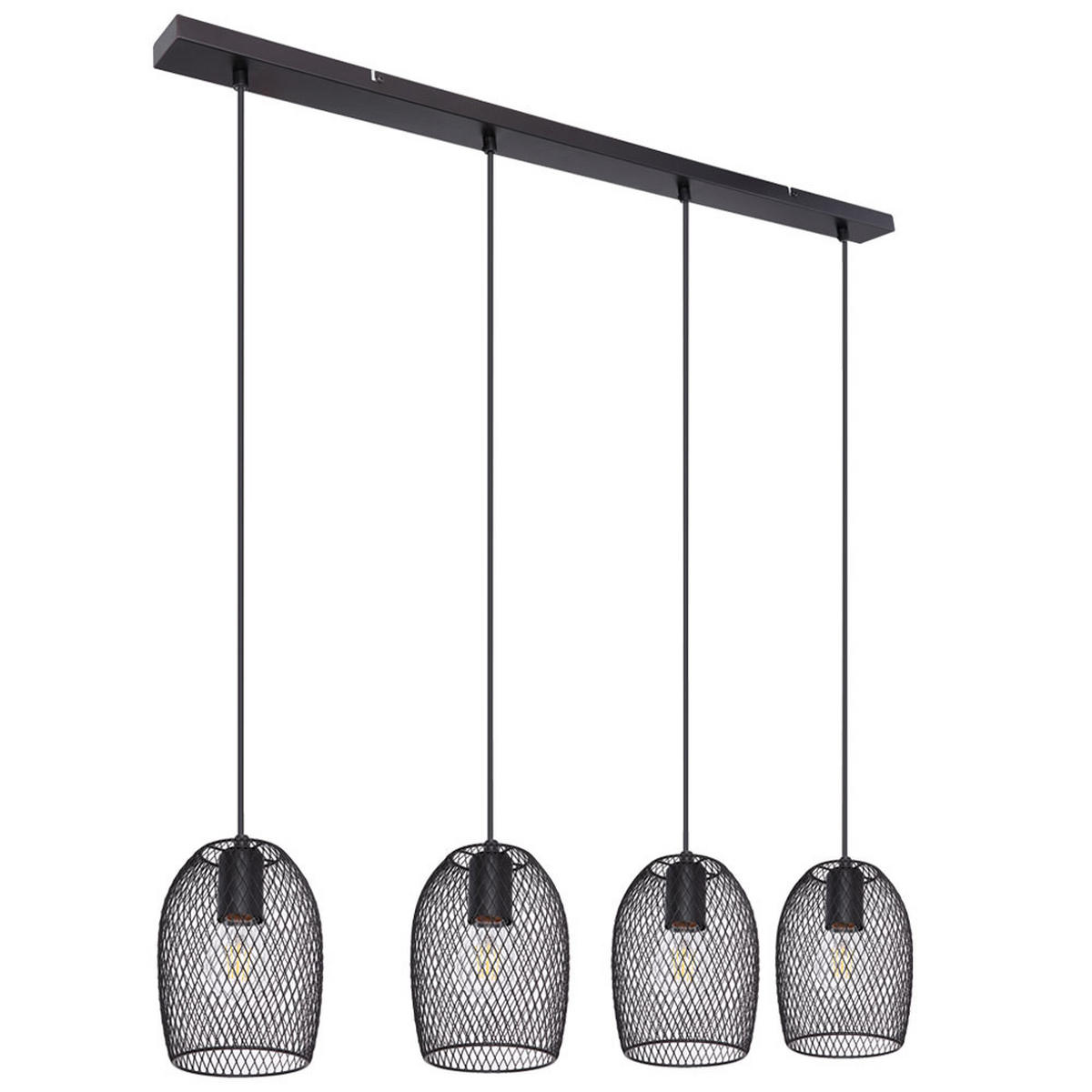 Diese LED Hängeleuchte DOPS präsentiert sich in einem eleganten schwarzen Geflecht-Design mit Gitteroptik. Mit einer Länge von 100 cm und einer Höhe von 150 cm fügt sie sich harmonisch über Esstischen oder in Wohnbereichen ein und bietet vielseitige Beleuchtungsmöglichkeiten. Die Leuchte verfügt über vier Flammen und bringt ein warmes, einladendes Licht, welches individuell per Fernbedienung gesteuert werden kann. Die integrierten LED-Leuchtmittel sind dimmbar und ermöglichen darüber hinaus einen Farbwechsel mit Memory- und Farbfixierungsfunktion. So können Sie je nach Stimmung oder Anlass die Lichtfarbe anpassen und schaffen stets ein stimmungsvolles Ambiente, das flexibel bleibt.