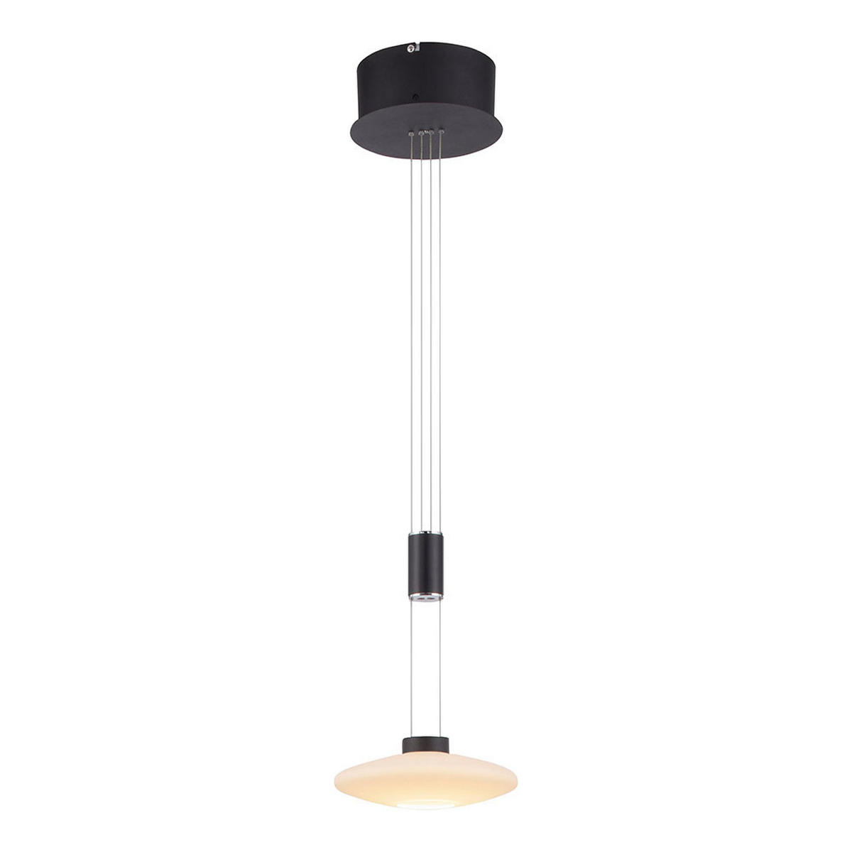 Elegante LED Hängeleuchte aus Metall und Glas in Schwarz