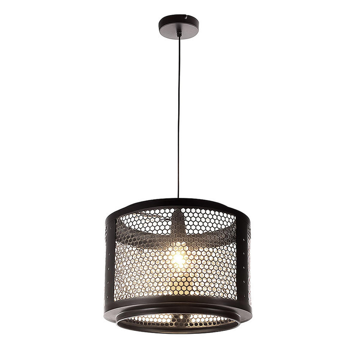 Diese stilvolle LED Hängeleuchte präsentiert sich in einem schwarzen und goldfarbenen Finish, das jedem Raum eine moderne und edle Atmosphäre verleiht. Das Gestell sowie der Lampenschirm bestehen aus hochwertigem Metall und sind in einem mattierten Look gehalten. Die besondere Gitteroptik des Drahtgeflechts sorgt für eine attraktive Lichtstreuung und setzt dekorative Akzente. Mit einer Höhe von 150 cm und einem Durchmesser von 40 cm ist diese Leuchte ideal für die Beleuchtung über Tischen oder in Eingangsbereichen. Die Leuchte wird inklusive Leuchtmittel geliefert und kann einfach eingesetzt werden. Durch das Fehlen eines Schalters erfolgt die Bedienung über einen externen Schalter. Dank der IP20-Schutzart eignet sich diese Hängeleuchte bestens für den Innenbereich und wertet Ihr Interieur mit einem modernen Industriecharme auf.