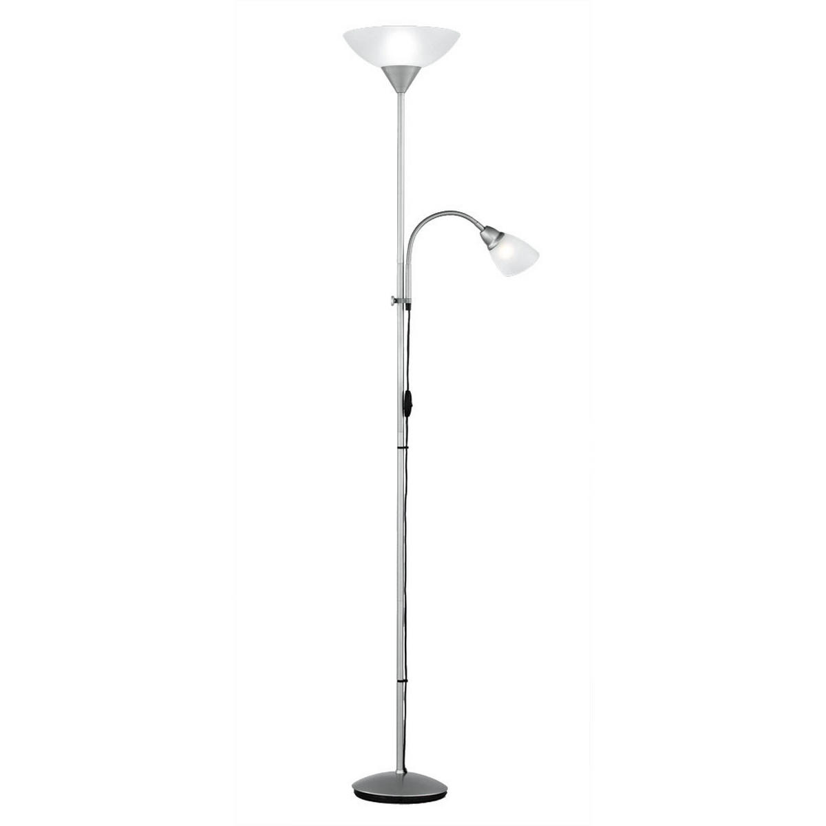 Diese LED Stehleuchte ERZWO besticht durch ihr modernes Design in Silber und das Gestell aus hochwertigem Metall. Der Lampenschirm aus Kunststoff sorgt für eine angenehme Lichtverteilung, während der flexible und verstellbare Lesearm individuelle Anpassungen ermöglicht. Dank der integrierten Lesefunktion eignet sich diese Leuchte ideal zum Lesen oder für gezielte Beleuchtung am Arbeitsplatz. Die Leuchte verfügt über zwei Lichtquellen und wird bequem über einen Fußschalter bedient. Mit einer Höhe von 180 cm bietet sie eine großzügige Ausleuchtung und setzt stilvolle Akzente in jedem Raum.