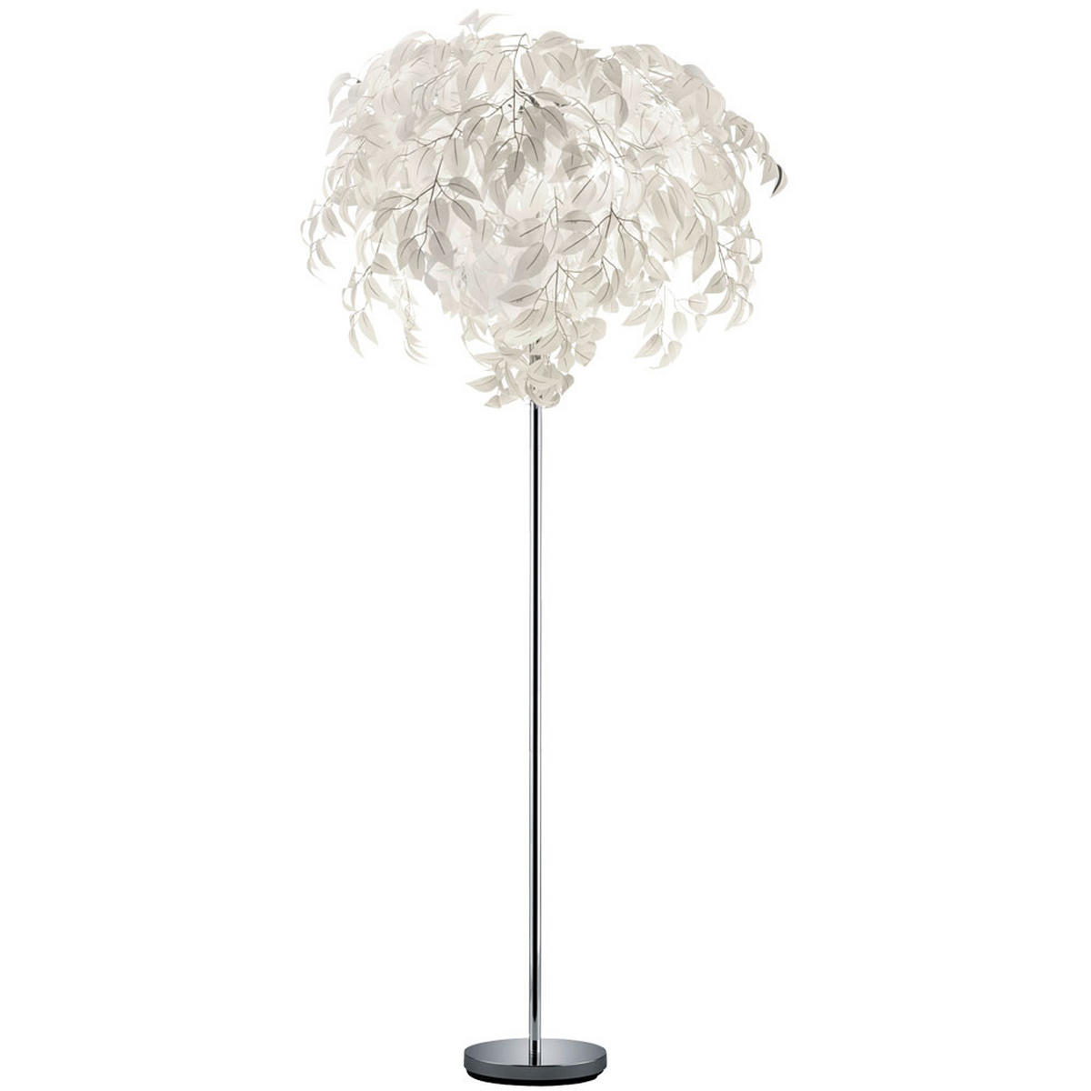 Diese LED Stehleuchte überzeugt durch ihr modernes Blätter-Design, das in Chrom und Silber gehalten ist. Mit einer Höhe von 180 cm und einem Durchmesser von 70 cm fügt sich die Leuchte stilvoll in Ihr Wohnambiente ein. Die drei Flammen sorgen für angenehmes, stimmungsvolles Licht. Ausgestattet mit einem Fußschalter, kann die Leuchte komfortabel bedient werden. Die Leuchtmittel sind inklusive und die Lichtquelle wird durch das ansprechende Finish aus Chrom abgerundet. Diese Stehleuchte verbindet dekorative und funktionale Aspekte ideal und ist eine attraktive Bereicherung für Ihr Wohnzimmer oder andere Wohnräume.