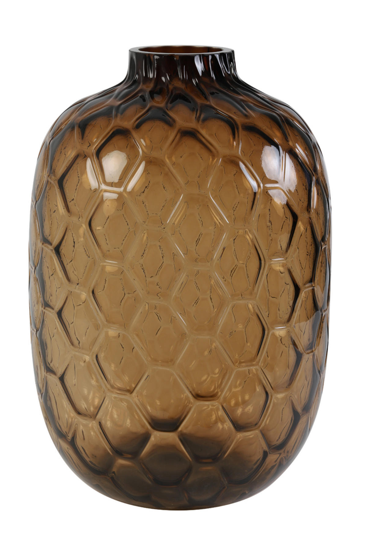 Die CARINO-Vase hat eine schöne Form, die (künstliche) Blumen oder Federn besonders gut zur Geltung bringt. Sie können dieses Produkt als echten Hingucker in jedem Raum einsetzen! Diese Vase besteht aus Glas und hat eine braune Farbe. Dieses Produkt hat die folgenden Abmessungen: 34x34x50 cm.