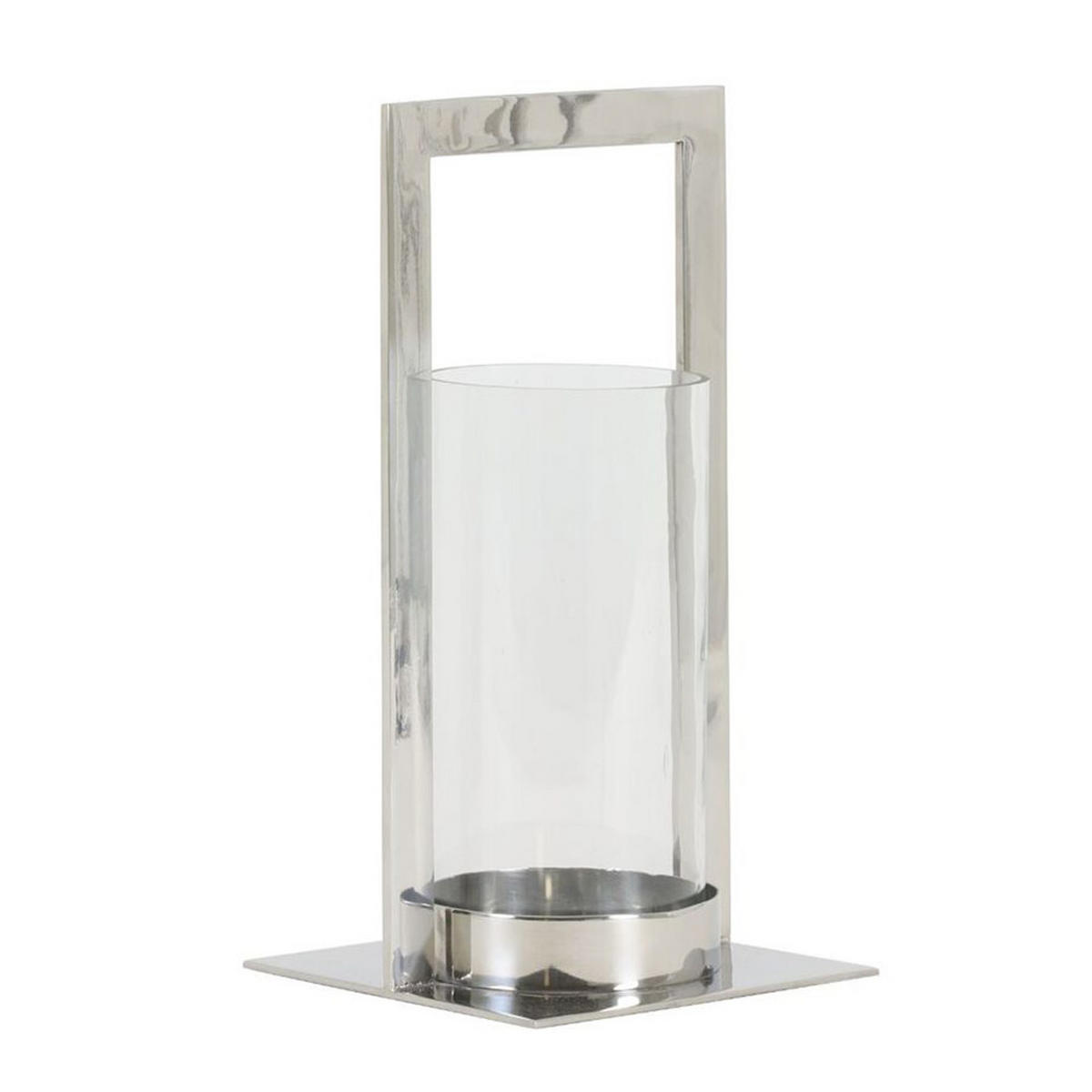 • Elegantes Design: Mit einem Metallrahmen in Nickel und einer Kombination aus eckigem Rahmen und rundem Glas wird diese Laterne zum Blickfang in Ihrem Zuhause.
