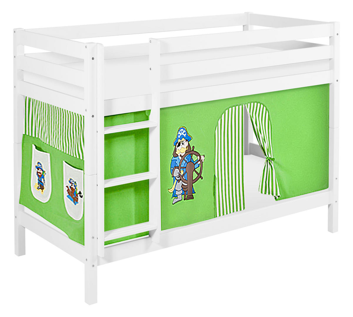 Lilokids ETAGENBETT JELLE 90x190 cm Pirat grün gestreift - Hochbett - inkl. Vorhang und 2 Lattenrosten