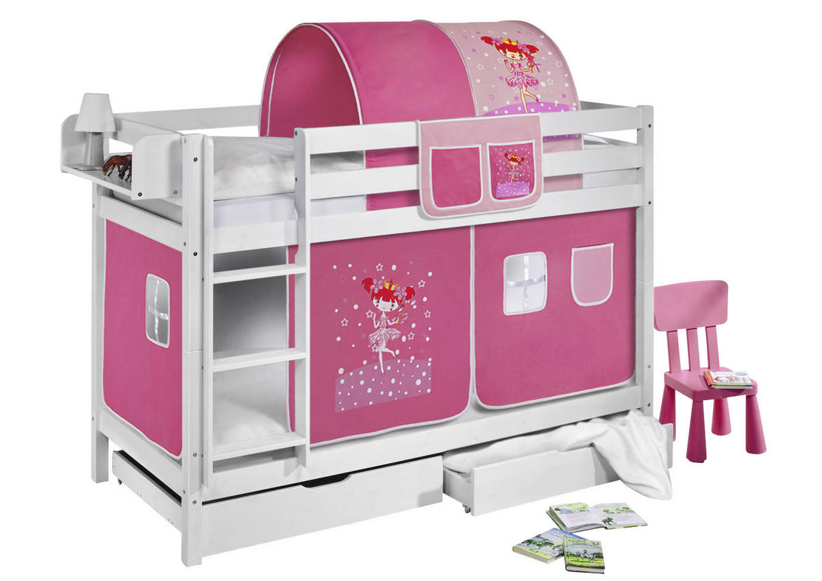 Bitte beachten Sie: Im Lieferumfang enthalten sind das Etagenbettgestell und die passenden Vorhänge. Zubehör wie Tunnel, Taschen, Hängeregal, Matratzen, Lattenroste und Dekoration sind nicht enthalten, können aber bequem in unserem Shop dazu bestellt werden.