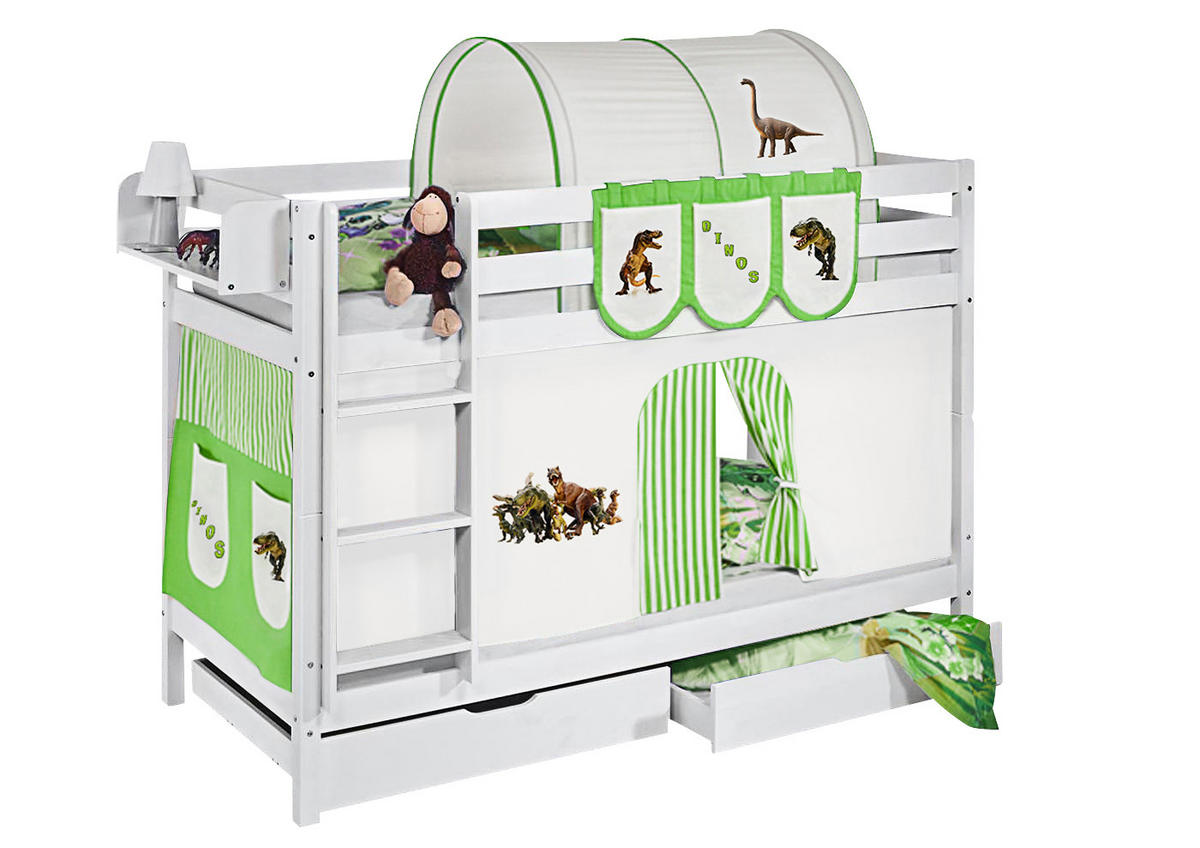 Lilokids ETAGENBETT JELLE 90x200 cm Dinos grün - Hochbett - inkl. Vorhang und 2 Lattenrosten