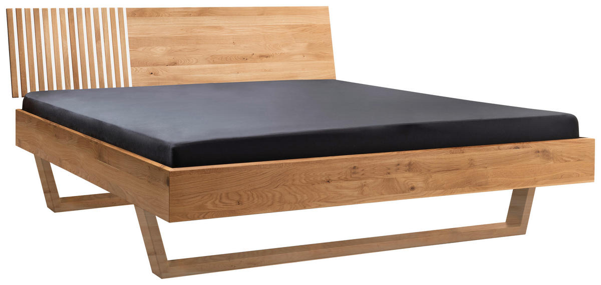 Eichefarben und Weiß inklusive Holz-Kopfteil lädt zum Ausruhen und Träumen ein.