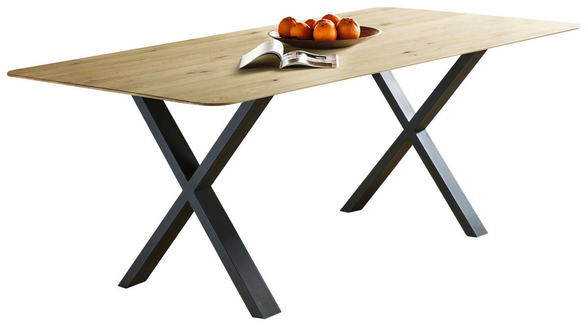 Linea Natura ESSTISCH 200/100/75 cm Echtholz Holz, Metall in verschiedenen Größen erhältlich, Variantenauswahl rechteckig Schwarz, Eichefarben