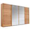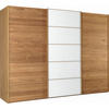 Schwebetürenschrank "Kufstein" von LINEA NATURA besticht durch sein natürliches Design. Das teilmassive Eichenholz bringt ein behagliches Ambiente in Ihr Schlafzimmer. Die rechteckige Form betont die schlichte Eleganz des Kleiderschranks. Dabei setzt die Absetzung aus weißem Glas einen modernen Akzent. Die unauffälligen Griffleisten vollenden das geschmackvolle Design. Neben seiner stilvollen Optik bietet der Schrank viel Platz für Ihre Kleidung. Mit einer Breite von ca. 250 cm ist das hochwertige Möbelstück besonders geräumig. In 3 sanft aufgleitenden Türen sind beispielsweise Ihre Hosen, Shirts und Pullover bestens aufgehoben. 6 Einlegeböden sowie eine Kleiderstange garantieren die optimale Sortierung Ihrer Garderobe. Dieser Kleiderschrank bereichert Ihr Schlafzimmer! Gegen Aufpreis erhalten Sie in unseren Filialen zahlreiche Varianten, Farbalternativen, Zubehörteile und Beimöbel.