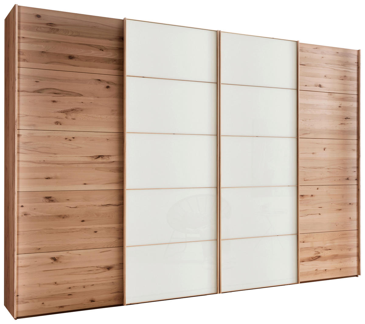 Linea Natura SCHWEBETÜRENSCHRANK 330/217/67 cm 4-türig Weiß, Buchefarben