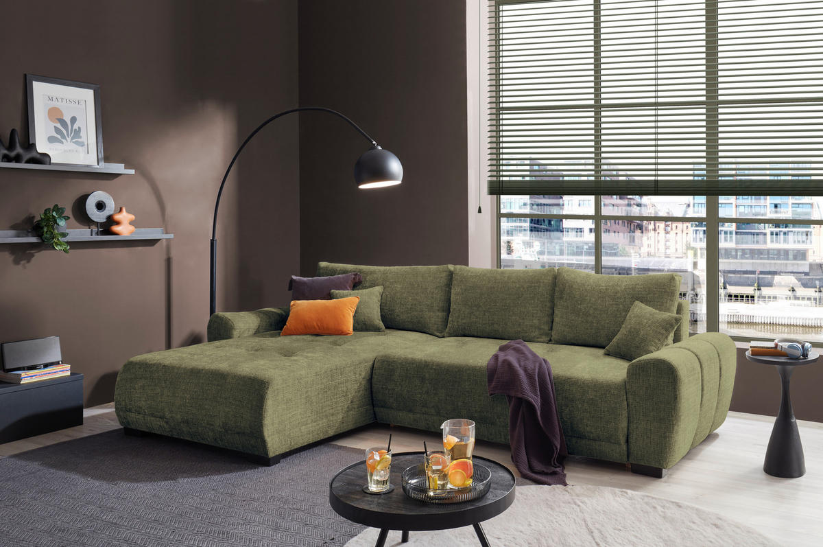 ECKSCHLAFSOFA HEYLAND Chenille Dunkelgrün inkl. BettkastenLivetasticXXXLutzMehr FarbenMehr Farben verfügbar1.581,00 €***1.125,00 €Nur online ausgestelltONLINE ONLY