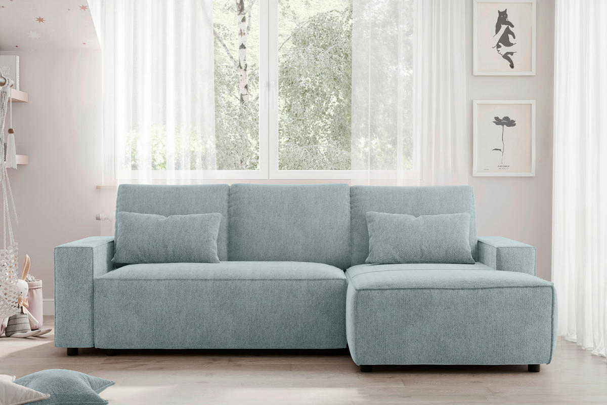 ECKSCHLAFSOFA Chenille Mintgrün inkl. Zierkissen, Rückenkissen, Bettkasten, Schlaffunktion, Rücken echt, Stauraum MintgrünSchenkel: 247/154 cm1.799,00 €***1.339,00 €
