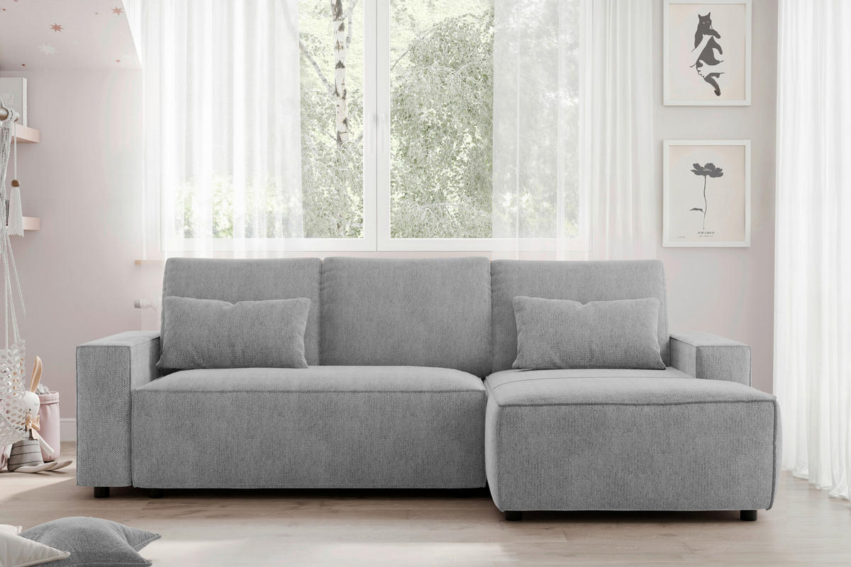 ECKSCHLAFSOFA Chenille Silberfarben inkl. Zierkissen, Rückenkissen, Bettkasten, Schlaffunktion, Rücken echt, Stauraum SilberfarbenSchenkel: 247/154 cm1.799,00 €***1.339,00 €