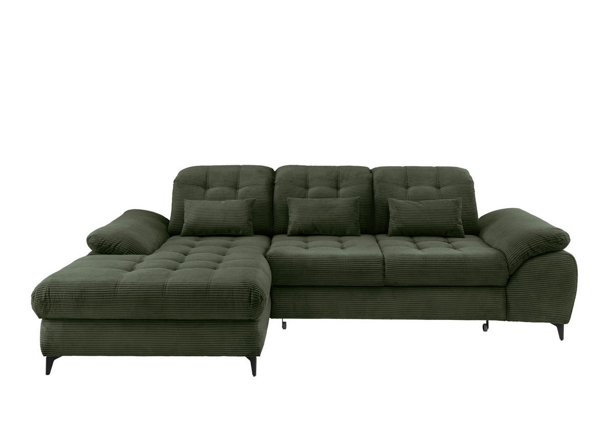 ECKSCHLAFSOFA Cord Dunkelgrün inkl. Bettkasten, Schlaffunktion, Kopfteilverstellung, Sitztiefenverstellung DunkelgrünSchenkel: 189/273 cm2.460,00 €***1.839,00 €