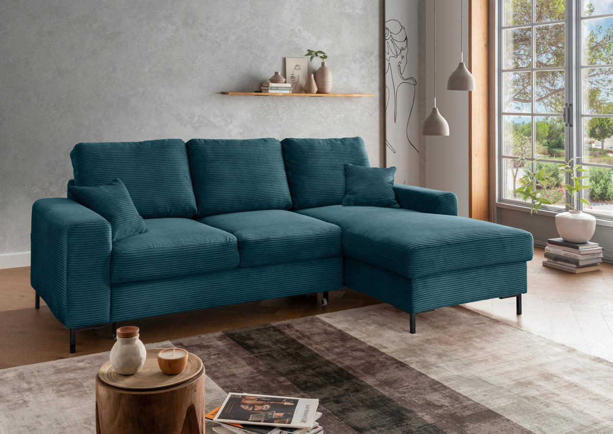 ECKSCHLAFSOFA Cord Petrol inkl. Zierkissen, Rückenkissen, Bettkasten, Schlaffunktion, Rücken echt, Liegefläche im OriginalstoffLivetasticXXXLutzMehr FarbenMehr Farben verfügbar1.459,00 €***1.099,00 €Nur online ausgestelltONLINE ONLY