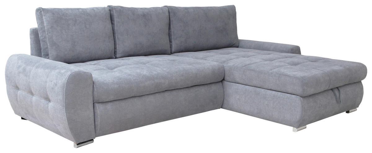 Livetastic ECKSCHLAFSOFA Velours Hellgrau inkl. Bettkasten, Schlaffunktion